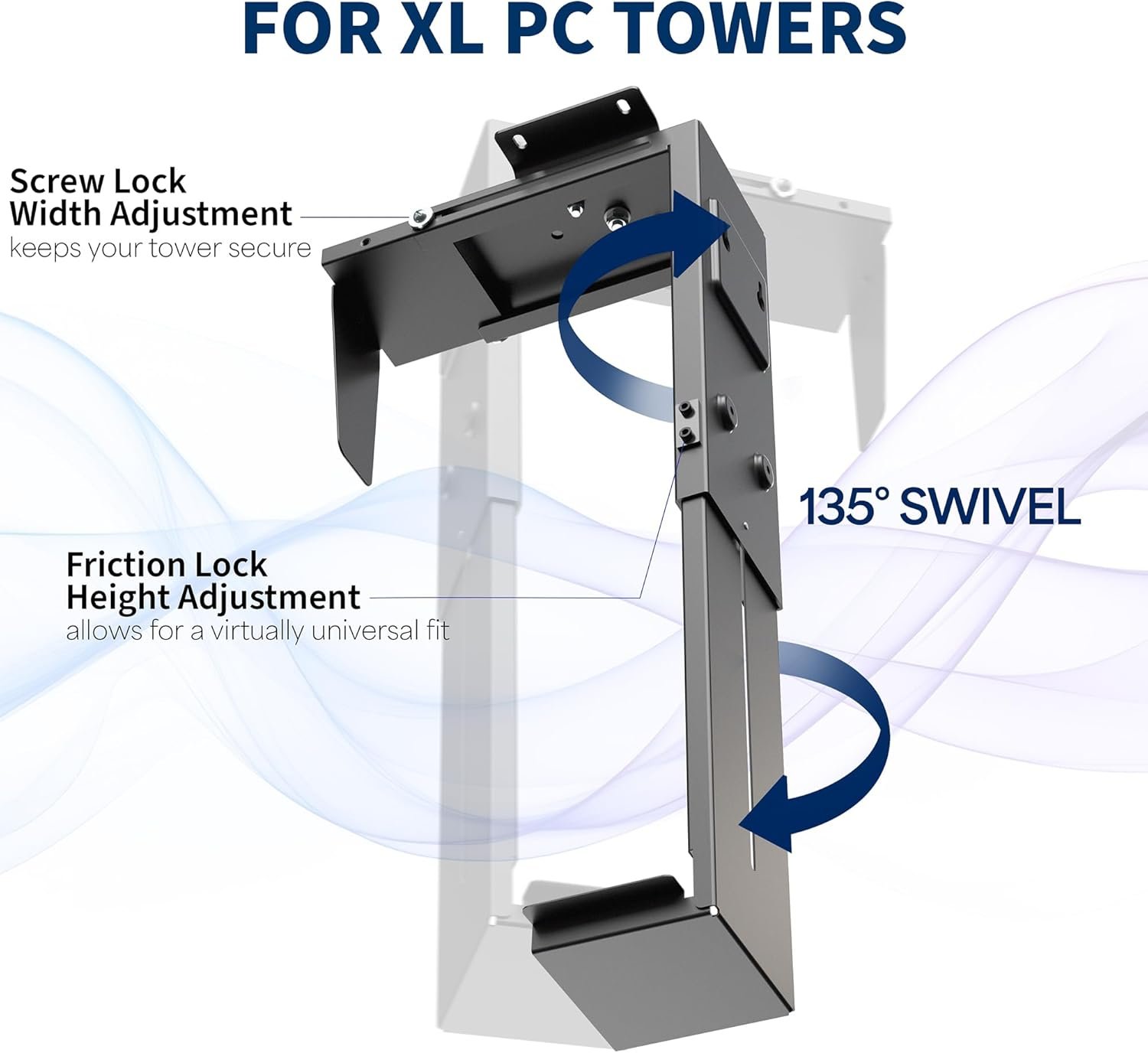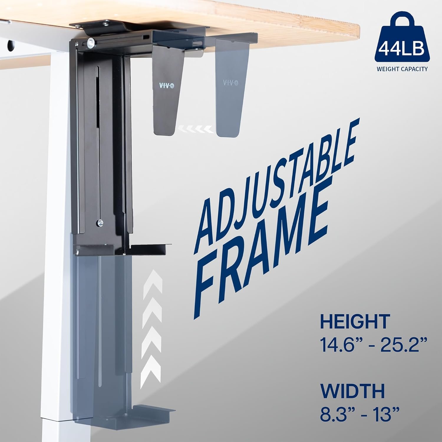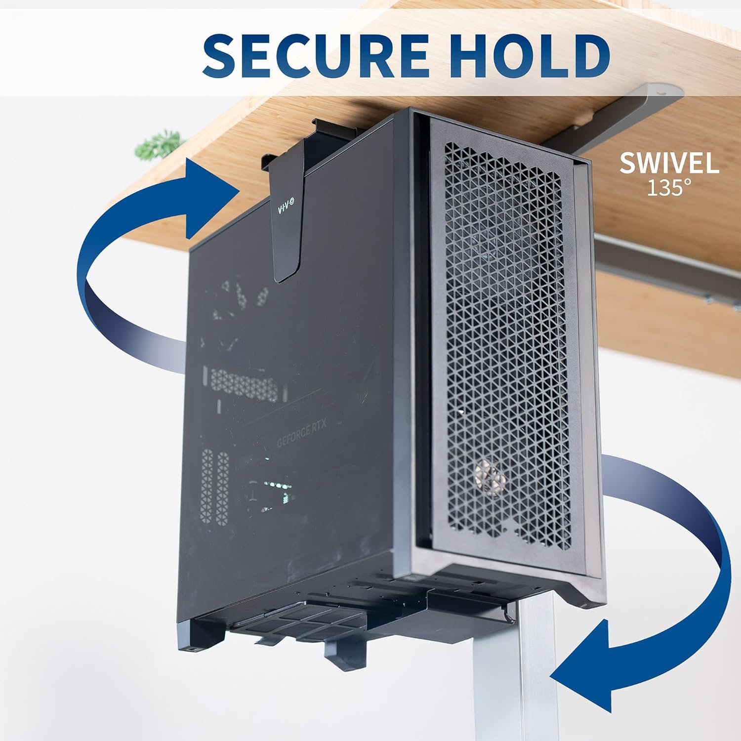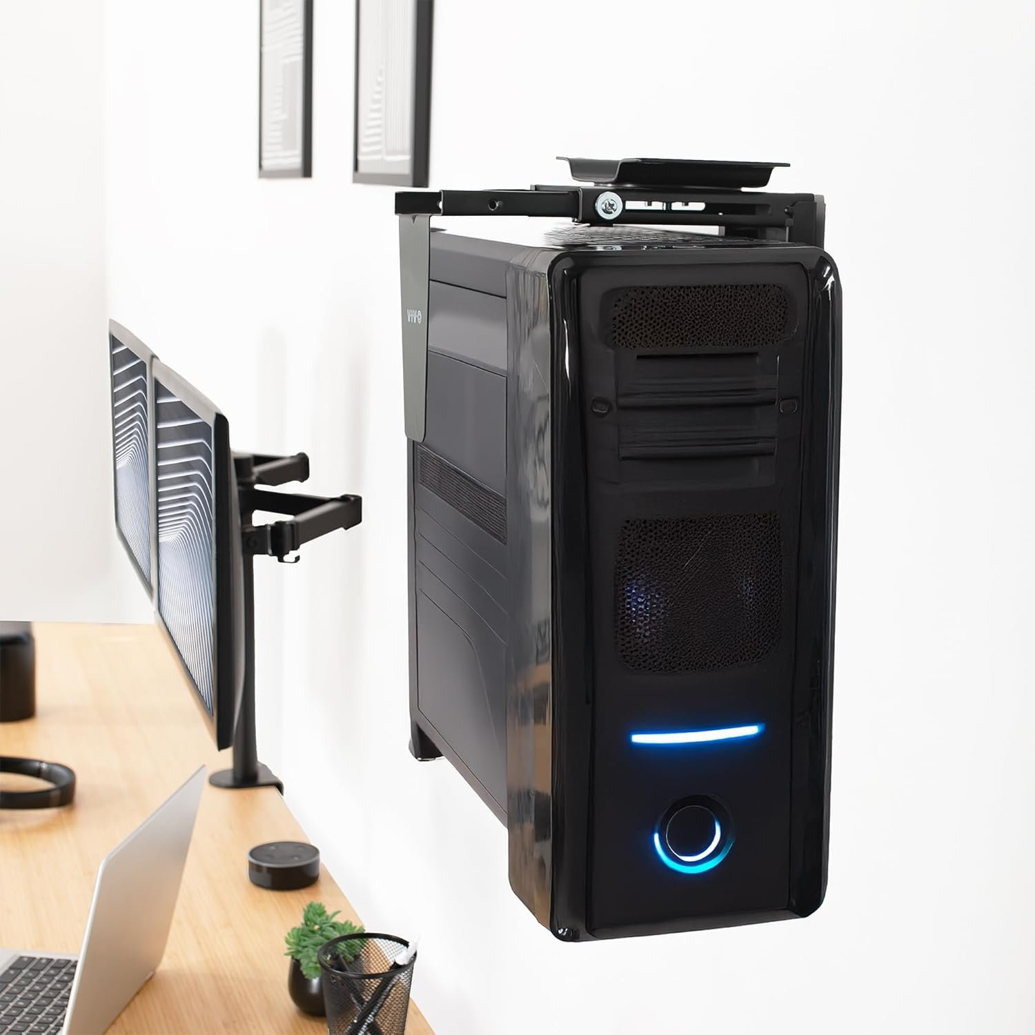 VIVO Adjustable Under Desk and Wall 8.3 to 13 inch Wide Office PC Mount, Large Computer Case CPU Machine Holder Stand with Swivel and Secure Locking, Black, MOUNT-PC01L