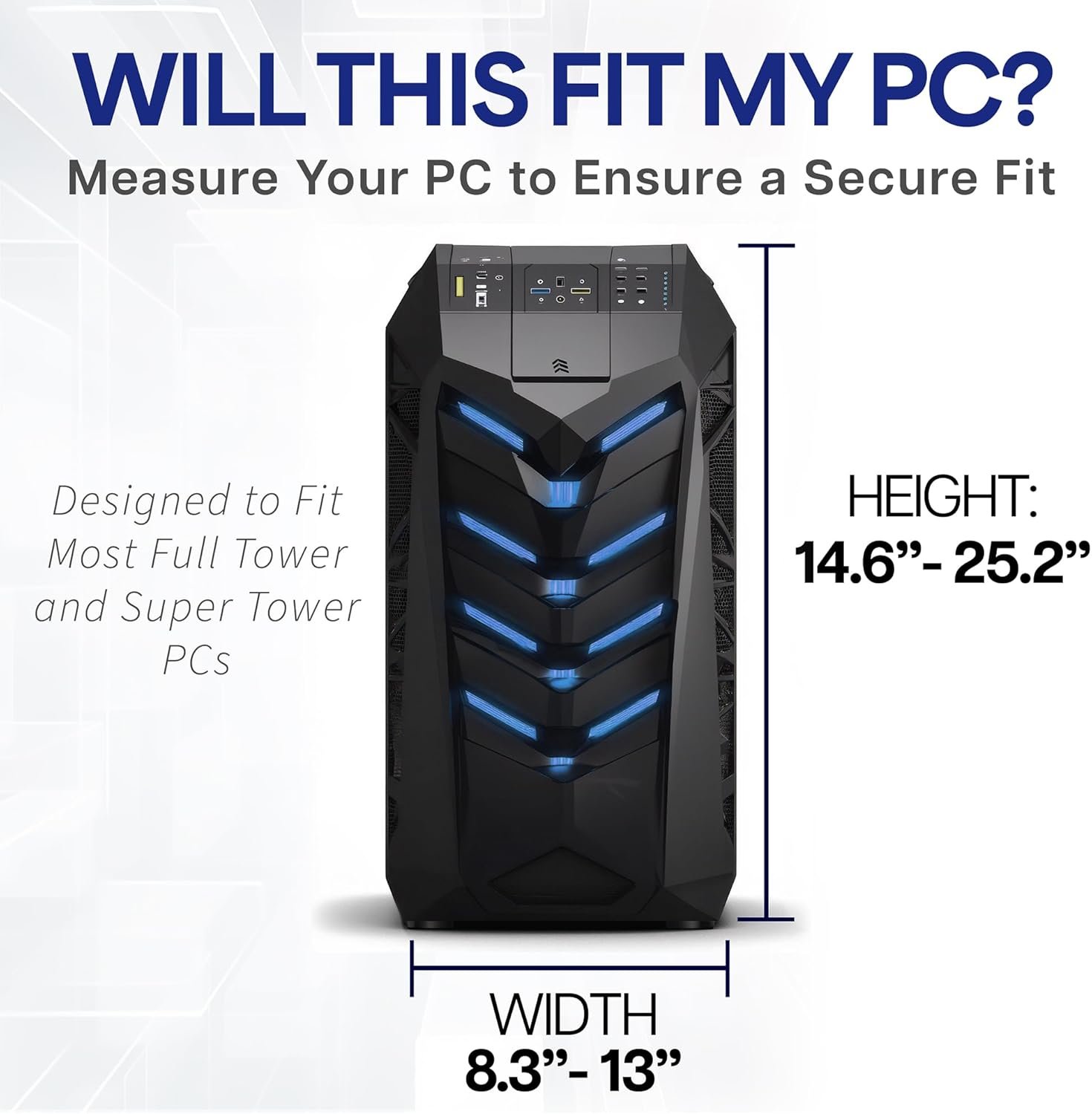 Adjustable Frame: Fits most PC cases on the market with adjustable width from 8.3” to 13” and adjustable height from 14.6” to 25.2”. Supports weights up to 44 lbs