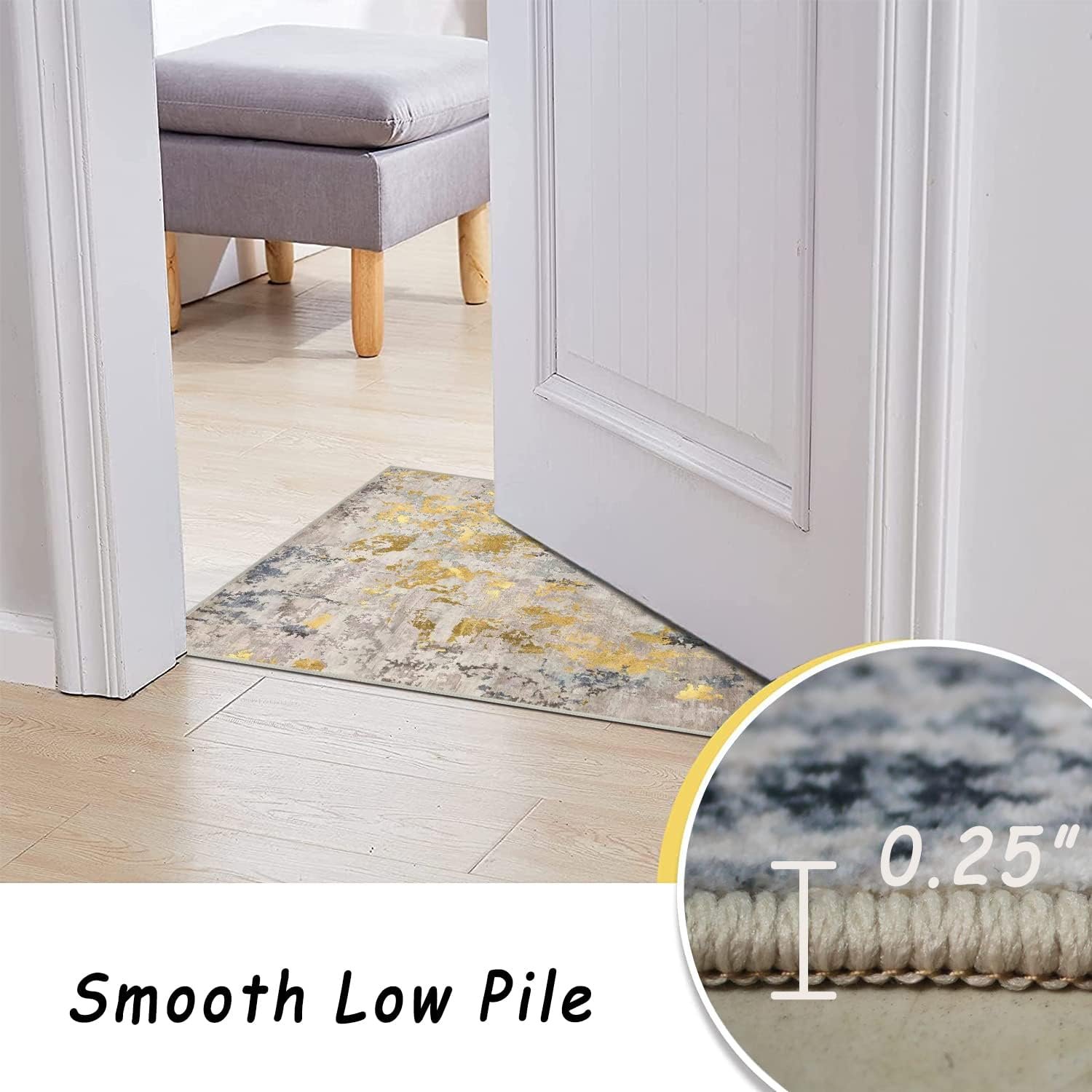 vivorug 5×7 Area Rugs – Ultra-Thin Washable Rug with Non-Slip Backing, Ideal for Living Room, Bedroom, Kitchen Floor Carpet – Modern Abstract, Easy Clean, Durable, Low Pile Grey/Mustard