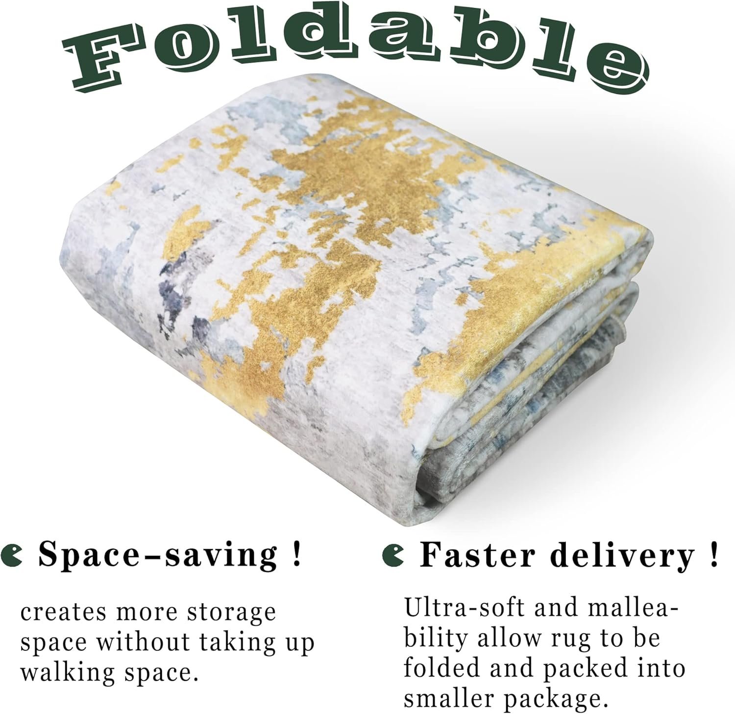 Ultra soft texture and malleable easily allowing this rug to be folded and packed into smaller package that get it to you faster.