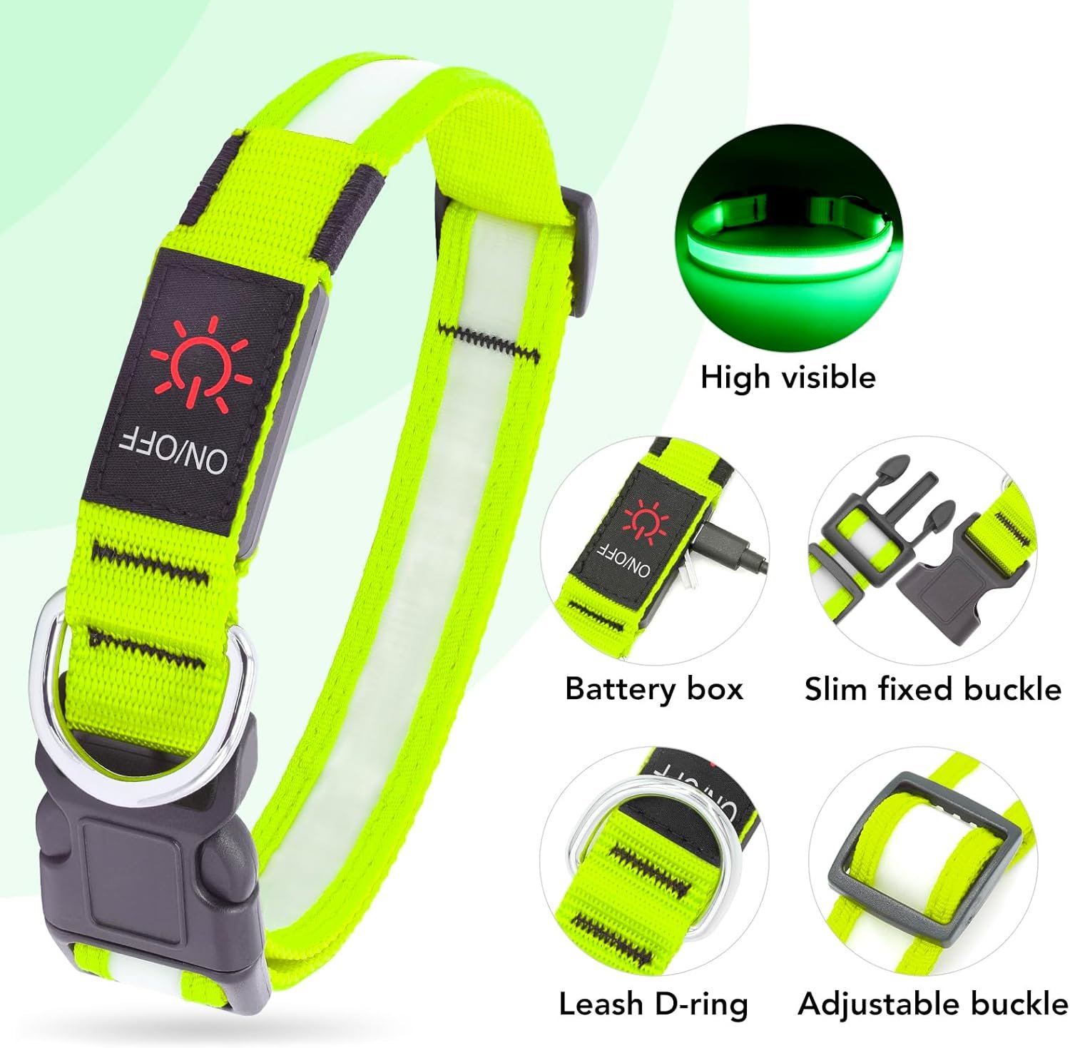 Vizpet LED Dog Collar, Light Up Dog Collar Adjustable USB Rechargeable Super Bright Safety Light Glowing Collars for Dogs(Medium,Green)