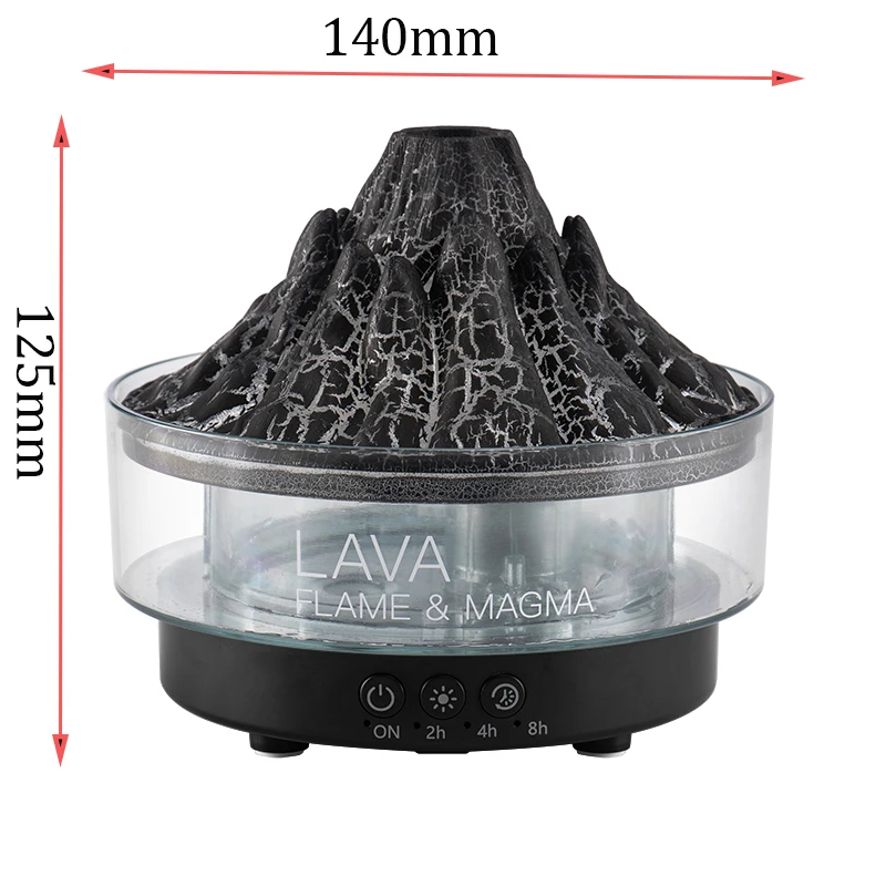 Volcano Aroma Diffuser Ultrasonic Air Humidifier Timer Auto Shut-Off Remote Control Flame Diffusers for Home Bedroom White