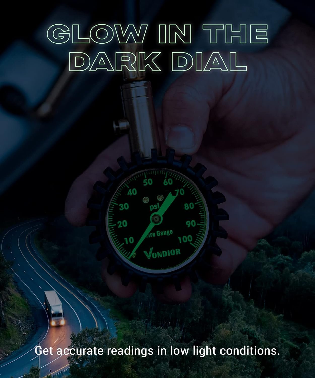 Vondior Tire Pressure Gauge (0-100 PSI) – Certified ANSI B40.1 Tire Gauge for Cars and Trucks, Large 2″ Glow Dial Easy-Read Tire Gauges for Tire Pressure Car Accessories