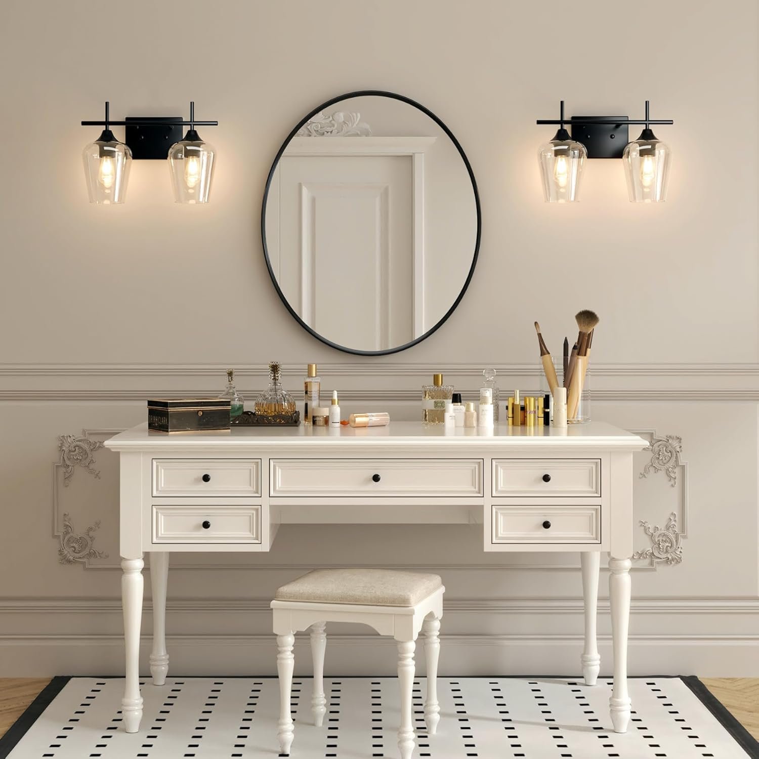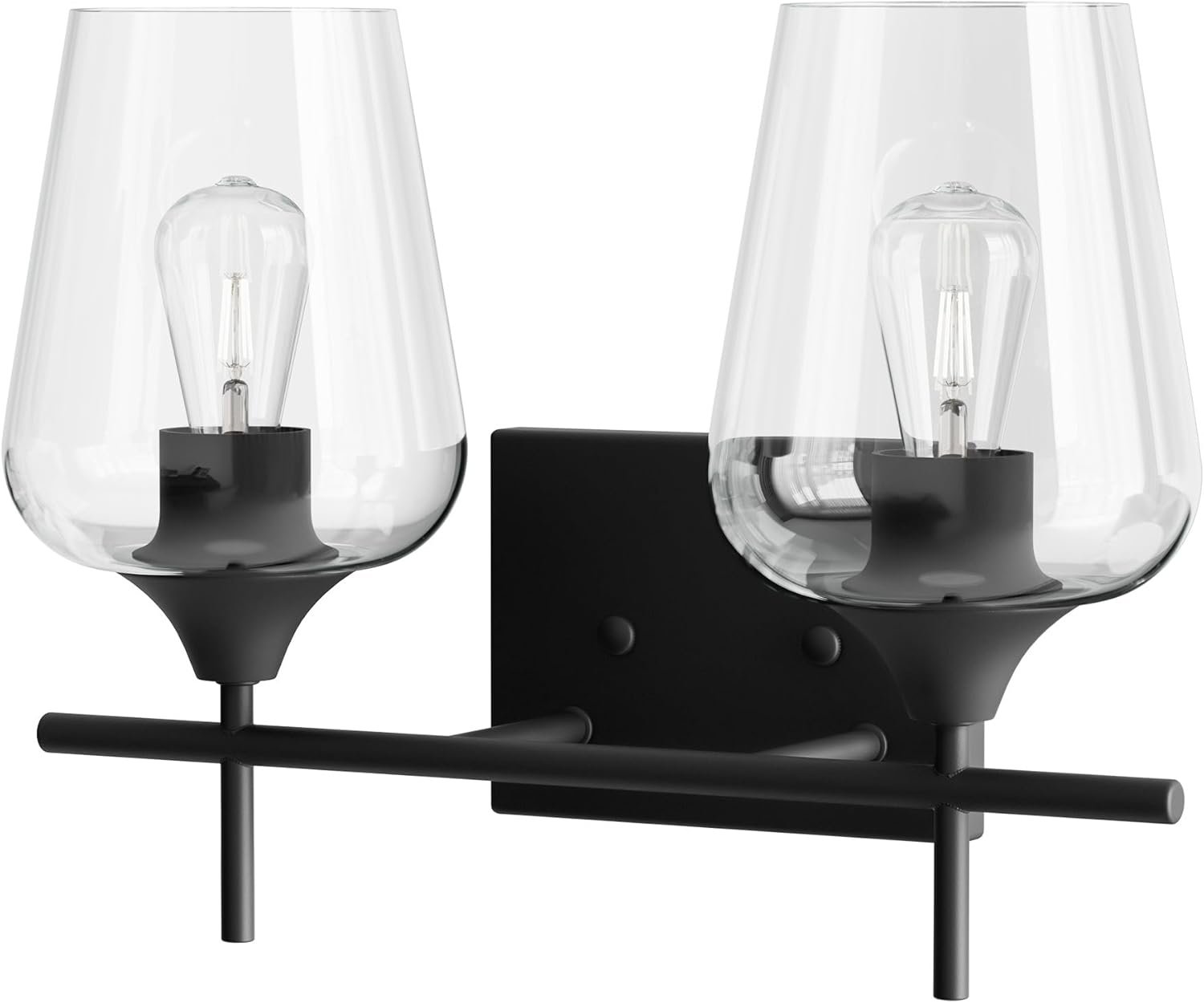 Modern Vanity Light: Vonluce’s 2-light bathroom vanity light blends clear wine glass-shaped shades with a matte black finish, adding a timeless charm to any interior style, from chic modern to classic traditional