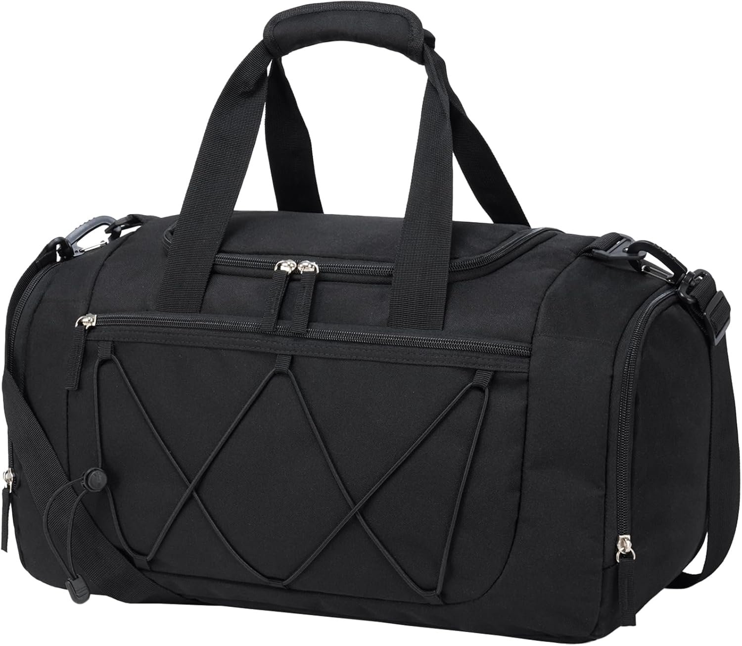 Multiple pockets duffel bag: This small duffle bag has 7 pockets to organize your items. Including 1 main compartment for clothes or gym gear; 2 slash pockets and 1 zipper pocket inside to fit keys, cards, or other small items; 1 side pocket for towels, and sports supplies; 1 front pocket for easy access to phone, and charger; 1 shoe compartment to keep the sneakers or slippers away from your clean clothes, or store other items you want to keep separate