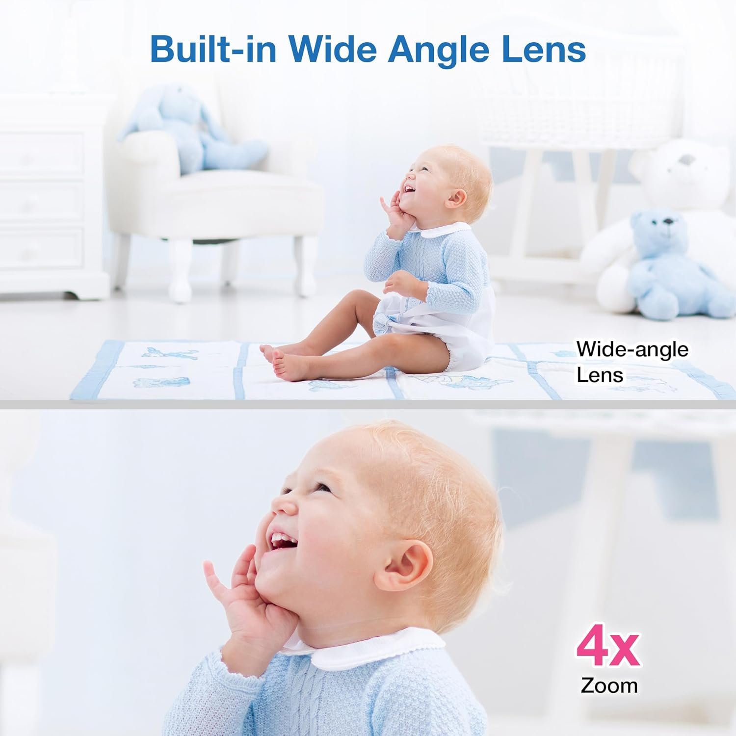 Fully Remote Pan Tilt Zoom- Enjoy watching your adorable baby in full HD and with up to 4x local and 10x digital zoom. The camera’s pan, tilt and zoom functions are fully motorized, lets you to check in on your little one from the parent unit or remotely on your smart device.