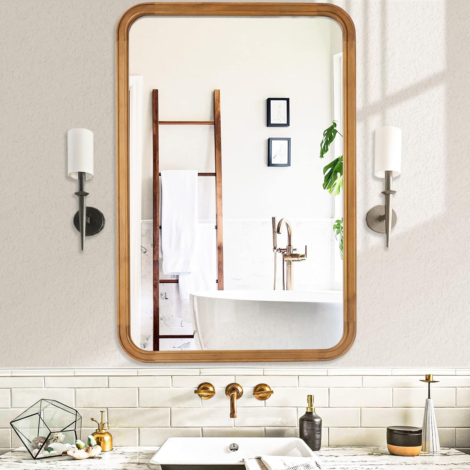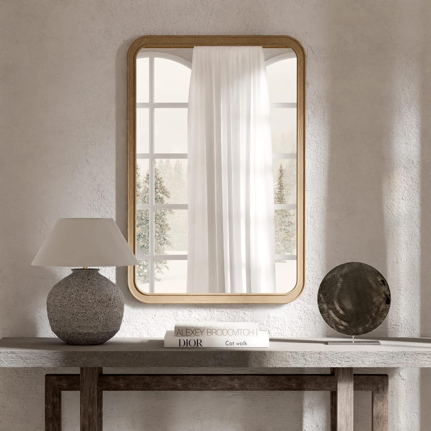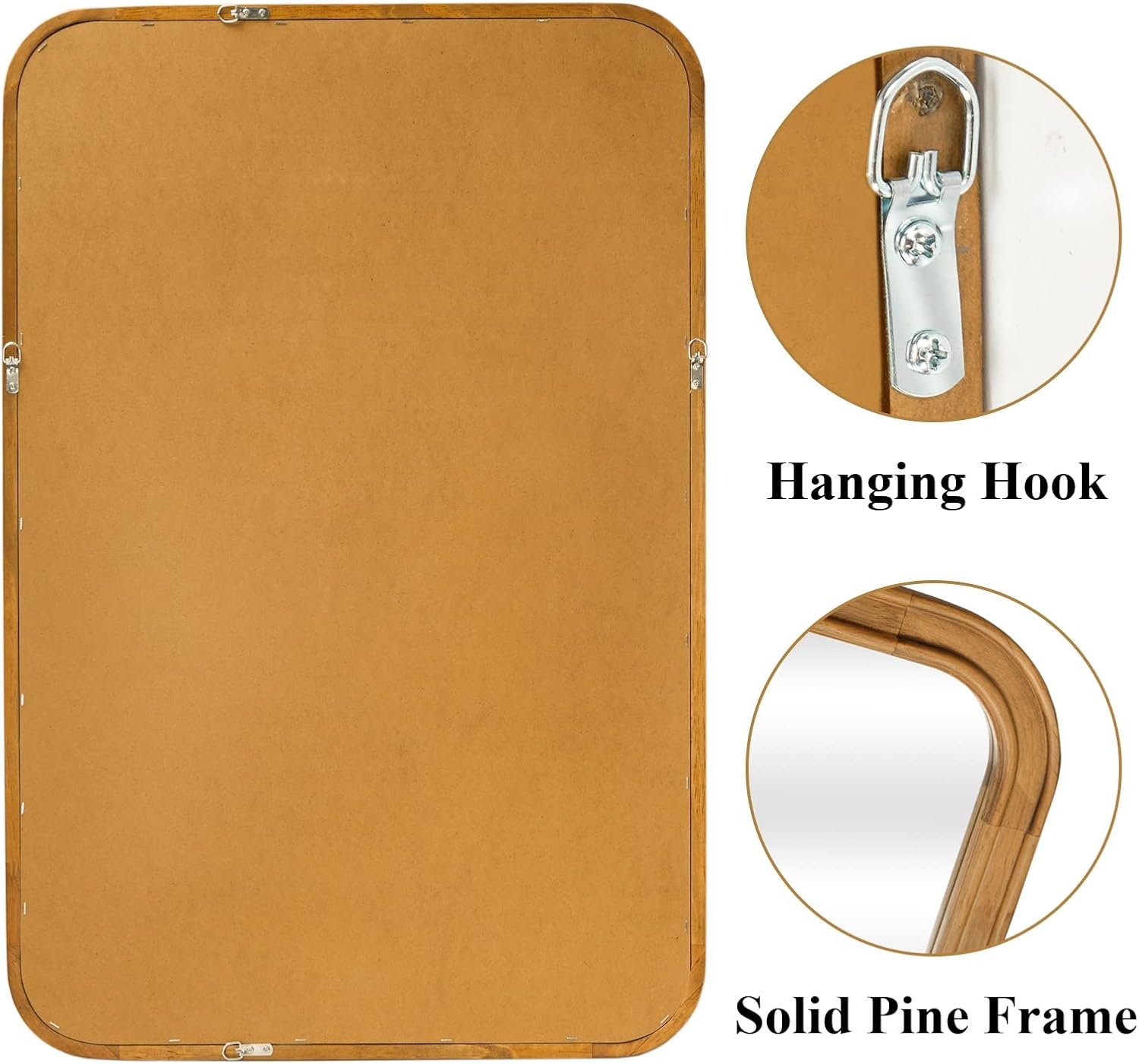 Wood Rounded Corner Frame Design: This Wall Mirrors are handcrafted with care and attention to detail and design, High-Quality solid wood frame, and Mirror Materials to guarantee the sturdiness and consistent aesthetic beauty of the design.