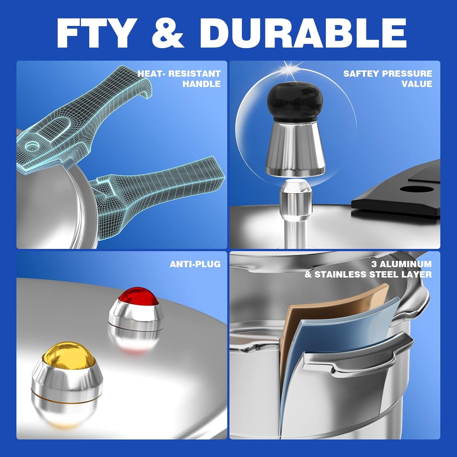 MULTIPLE SAFEGUARD DEVICES: The WantJoin aluminum pressure cooker features 8 safety features, acting as a fully armed bodyguard for your cooking. It includes a self-locking valve, limit valve, anti-blocking lid, safety valve, pressure release window, and more. Cook with peace of mind!