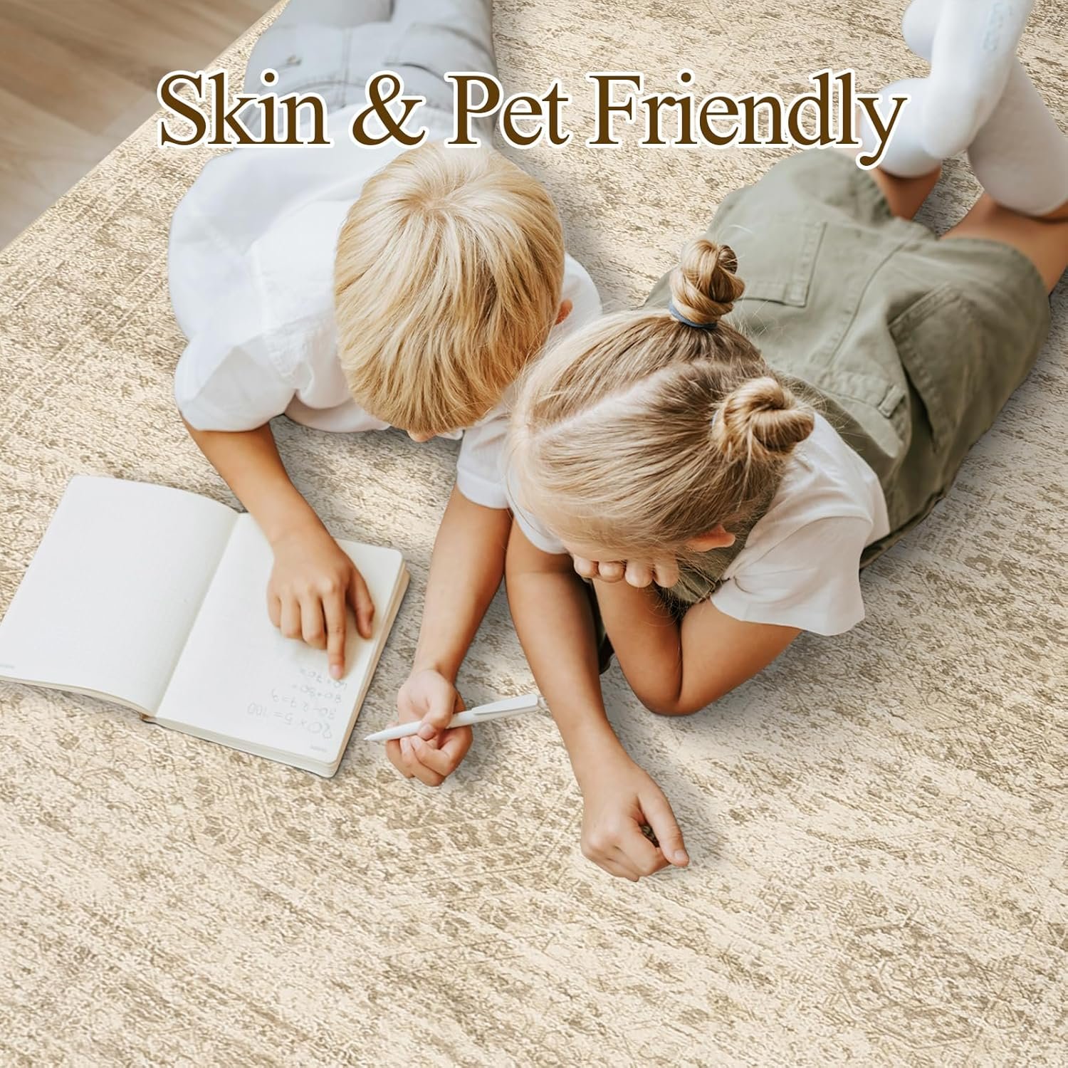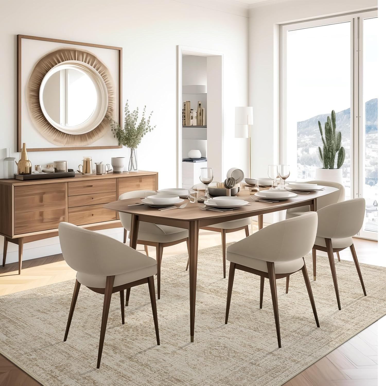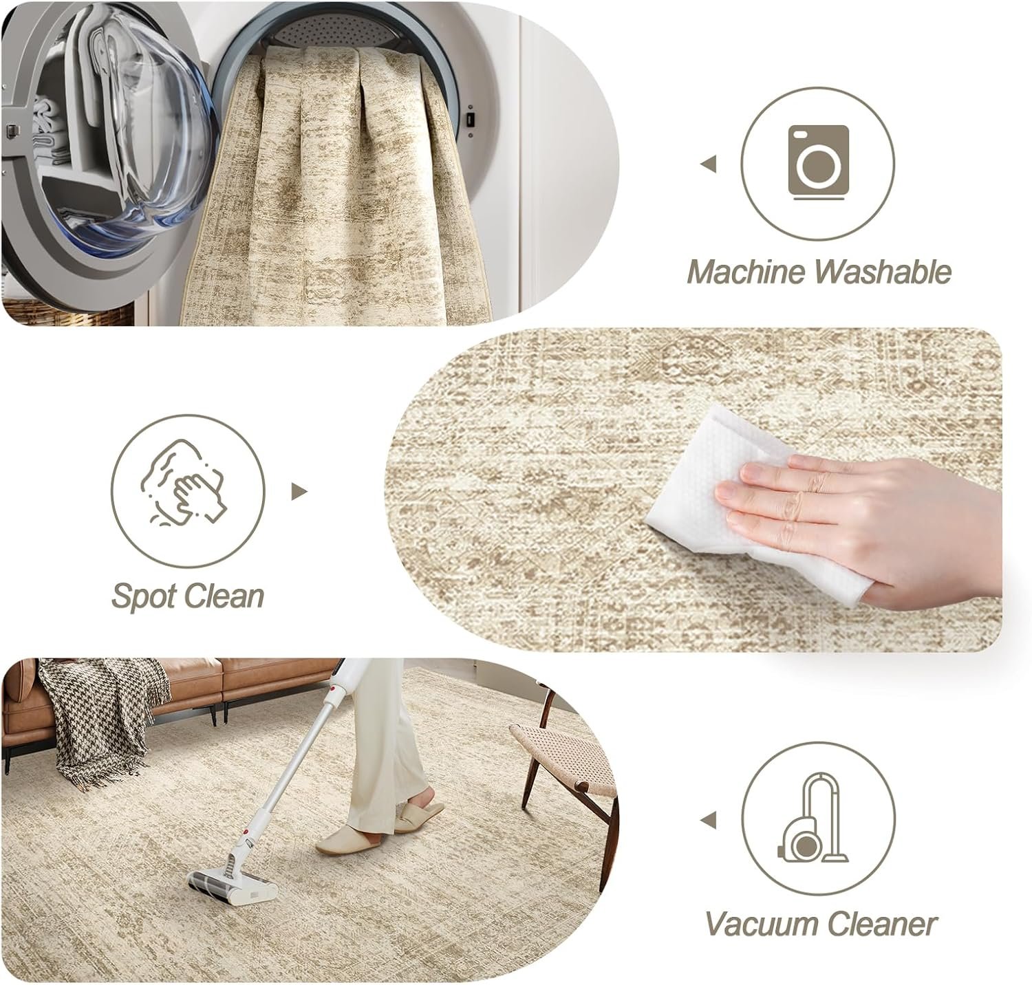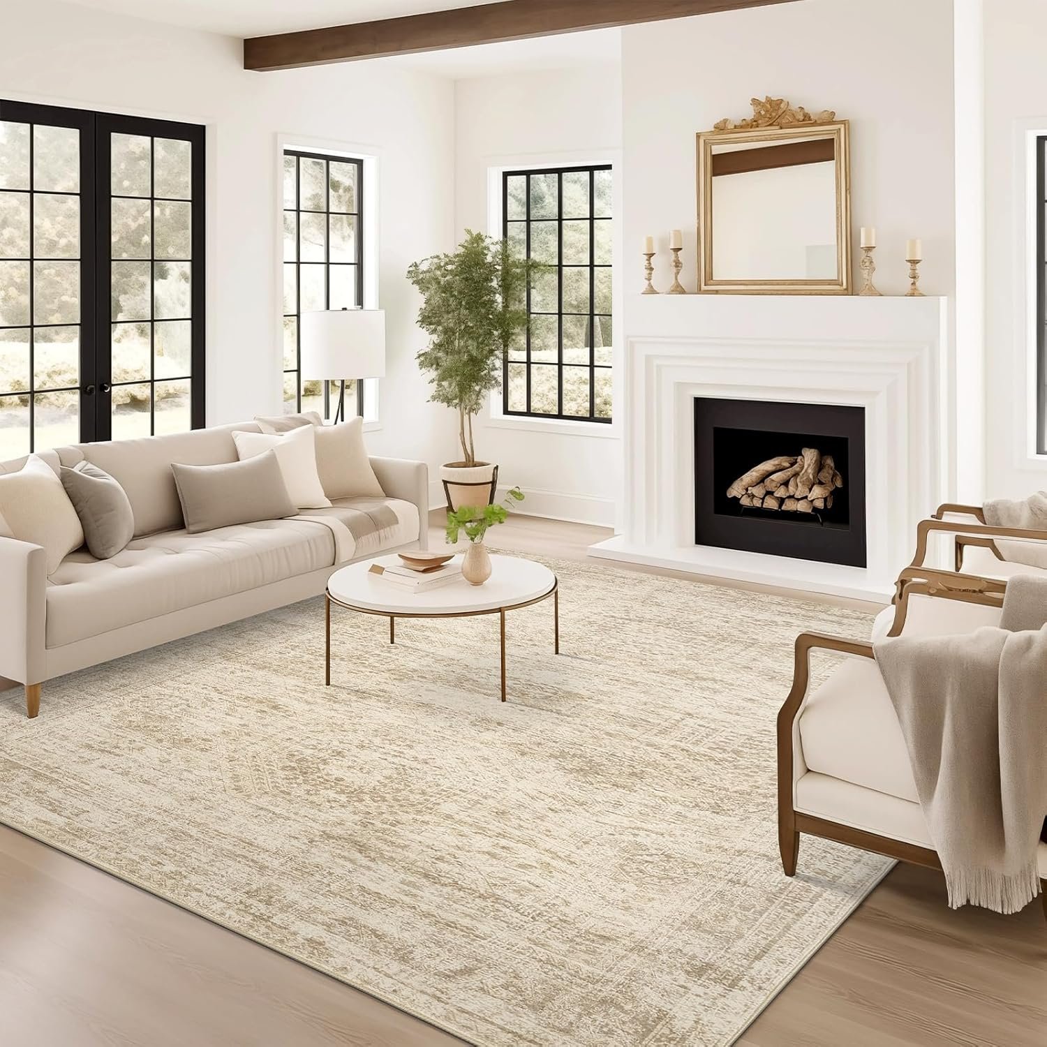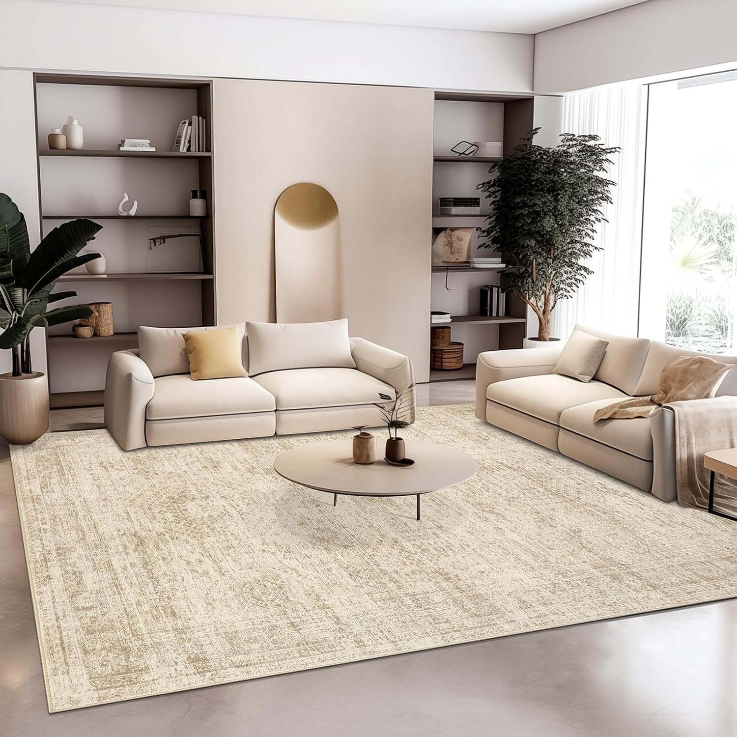 Washable Area Rug 8×10, Large Soft Rugs for Living Room Vintage Beige Carpet 8×10 Area Rugs for Bedroom Dining Room Non-Slip Stain Resistant Under Table Rug