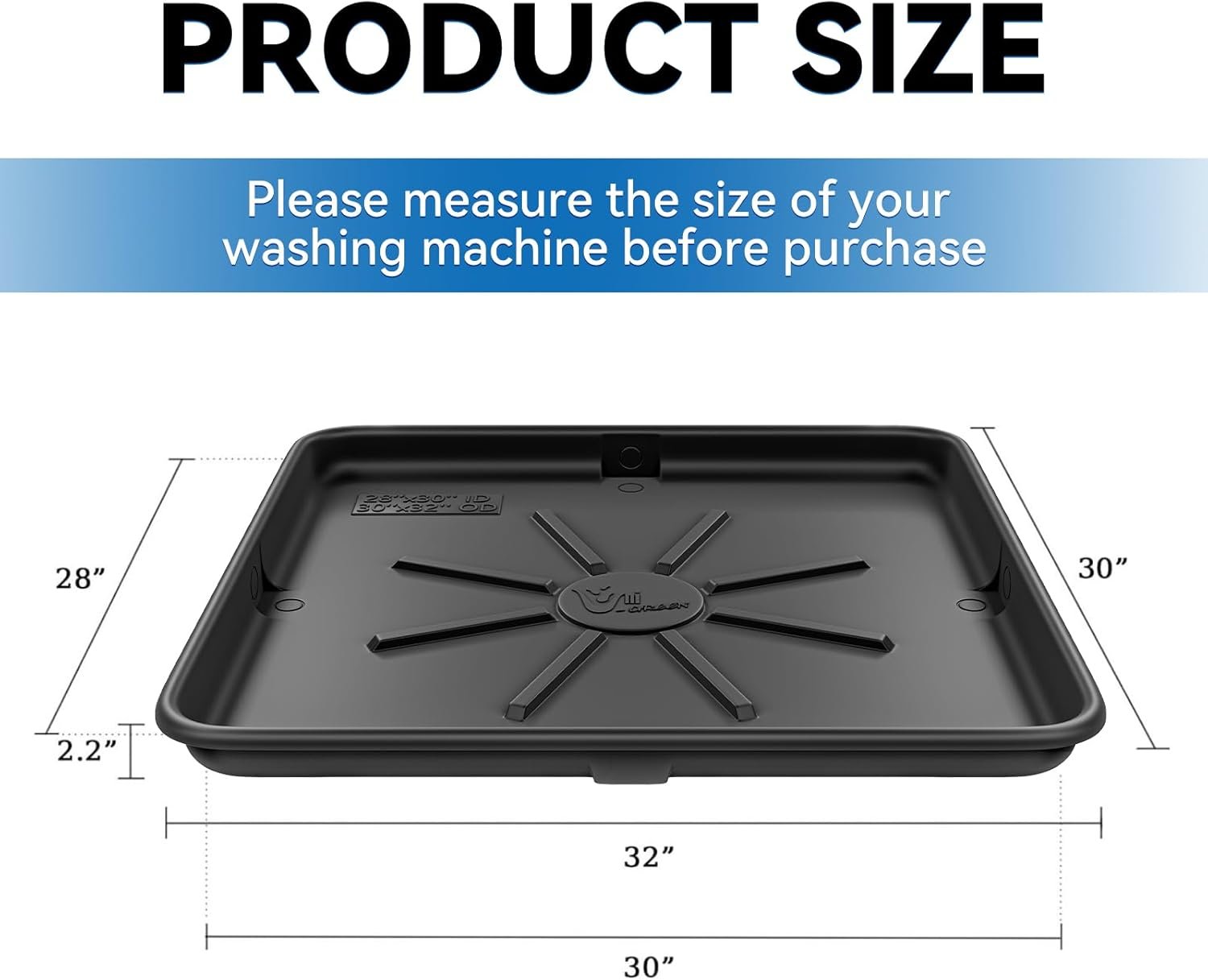 Washing Machine Drain Pan, Features a Heavy Durable Plastic Construction,Protects Floors from Leaksf,Size 30X32 Including 1″ Drain Fittings(Black)