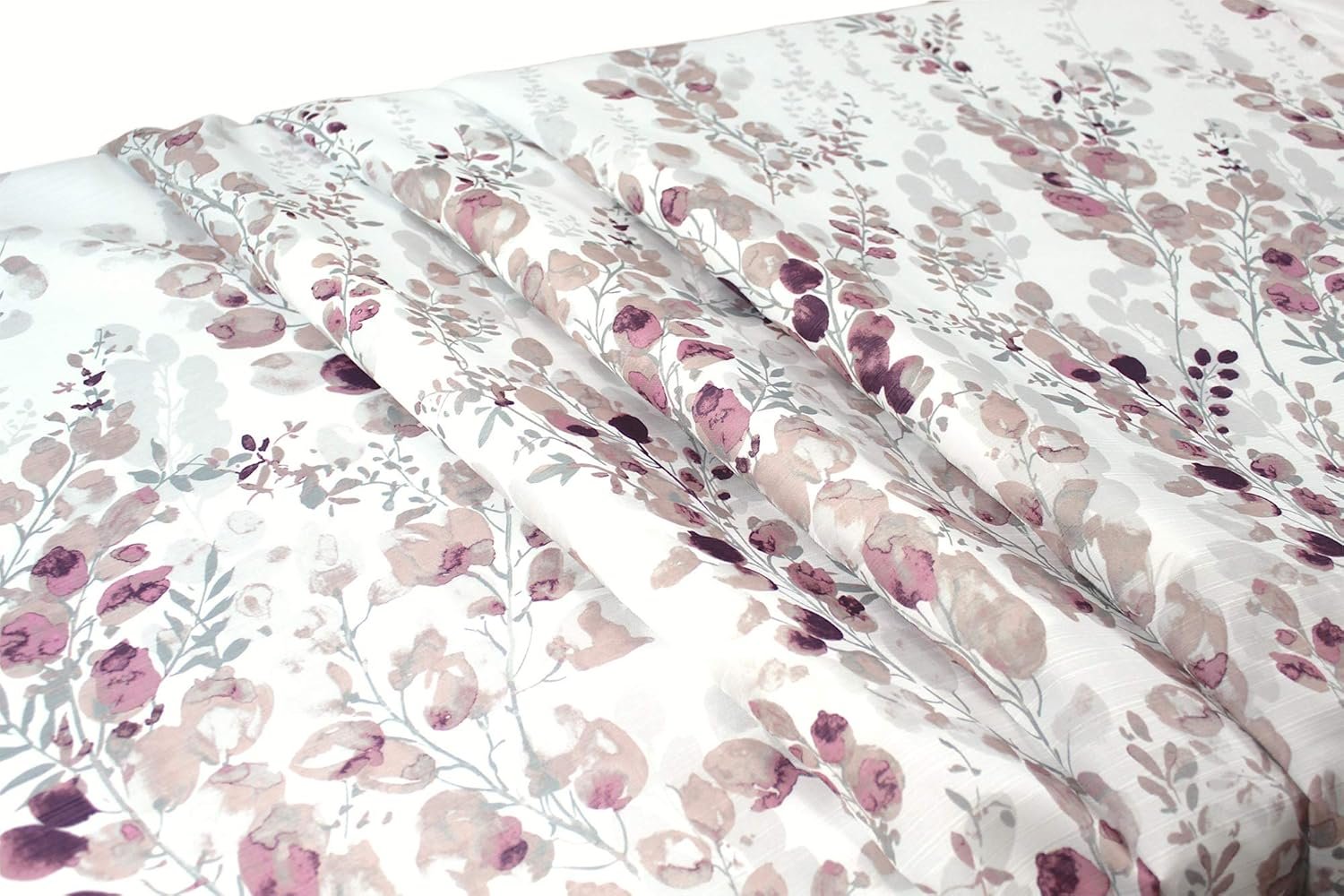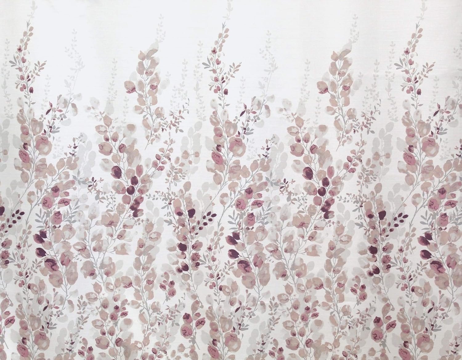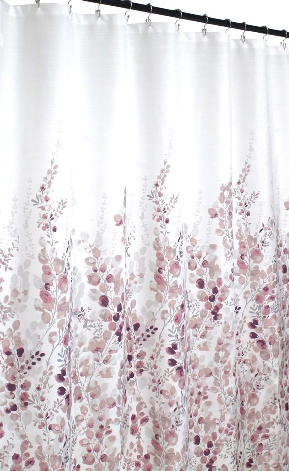 Transform your bathroom into a serene sanctuary with this elegant watercolor floral fabric shower curtain. The design features delicate botanical flowers and leaves in a sophisticated palette of pink blush, burgundy, grey, and white that gracefully transitions from a clean white background at the top to a rich concentration of blooms along the bottom. This artistic ombre effect creates visual interest while maintaining a soft, calming aesthetic perfect for any bathroom decor. The watercolor-inspired pattern brings the beauty of nature indoors with its hand-painted appearance, featuring graceful stems, petals, and foliage that appear to float across the fabric. The multi-toned color scheme allows this shower curtain to coordinate beautifully with various bathroom styles, from modern farmhouse to contemporary chic. Made from quality fabric material, this shower curtain adds both functionality and style to your daily routine, creating a spa-like atmosphere every time you step into your bathroom.