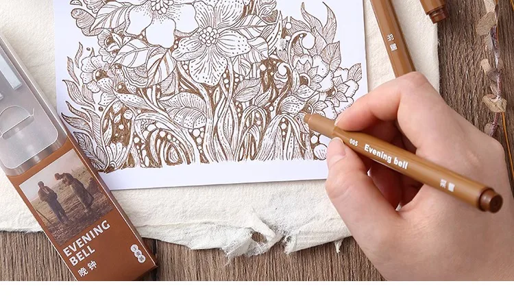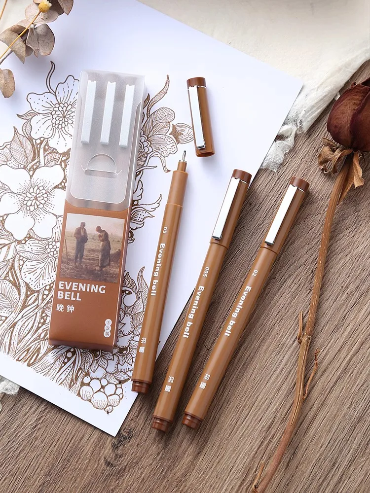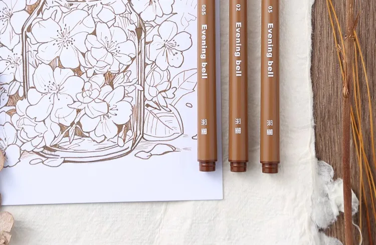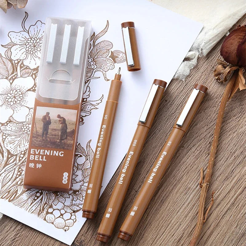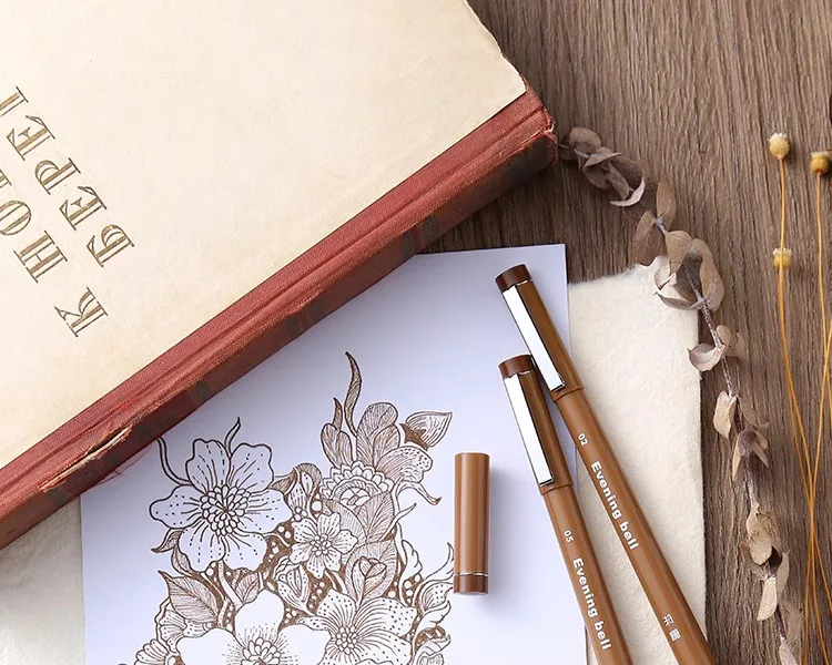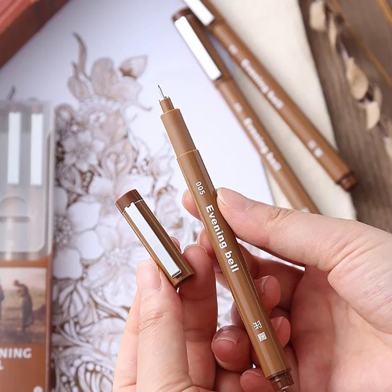 Waterproof Ink Brown Micron Neelde Drawing Pen Pigment Fine Line Markers Pen For Hand-Paint Anime Coloring Book Art Supplies