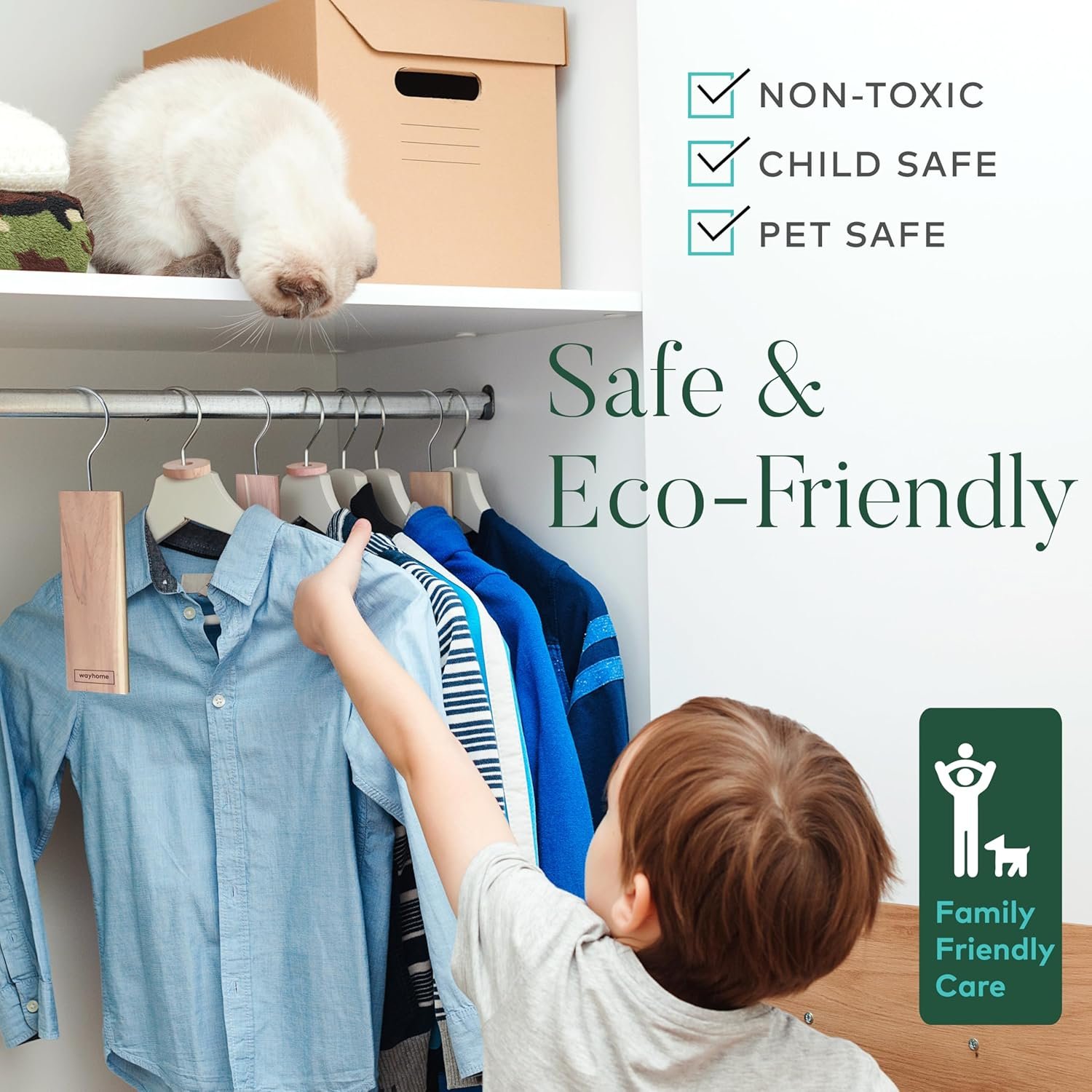 ECO-FRIENDLY SOLUTION – Made from sustainable, biodegradable cedar wood block, these closet air freshener sachets are safe for kids, pets, and delicate fabrics. Ideal for eco-conscious families.