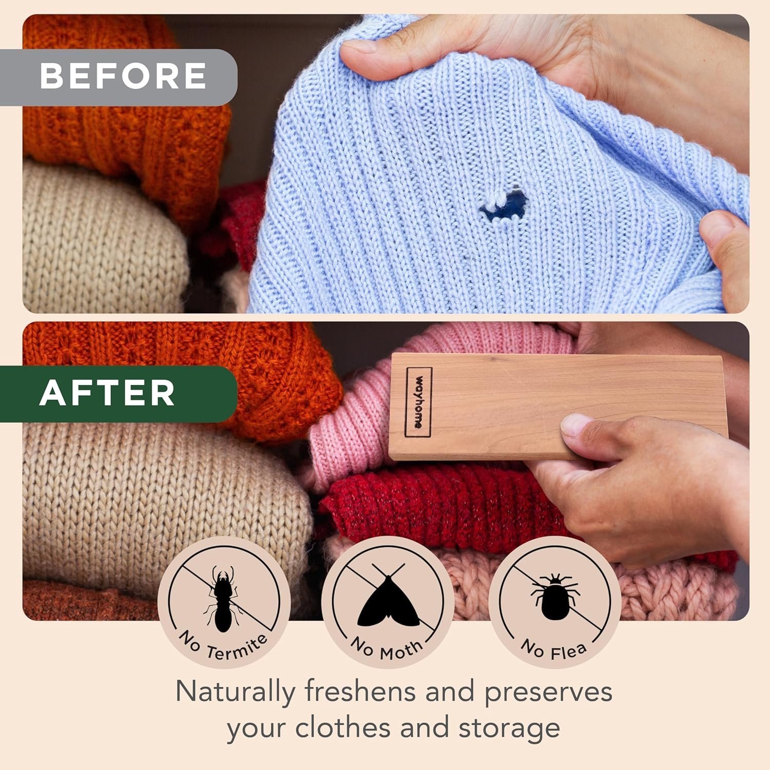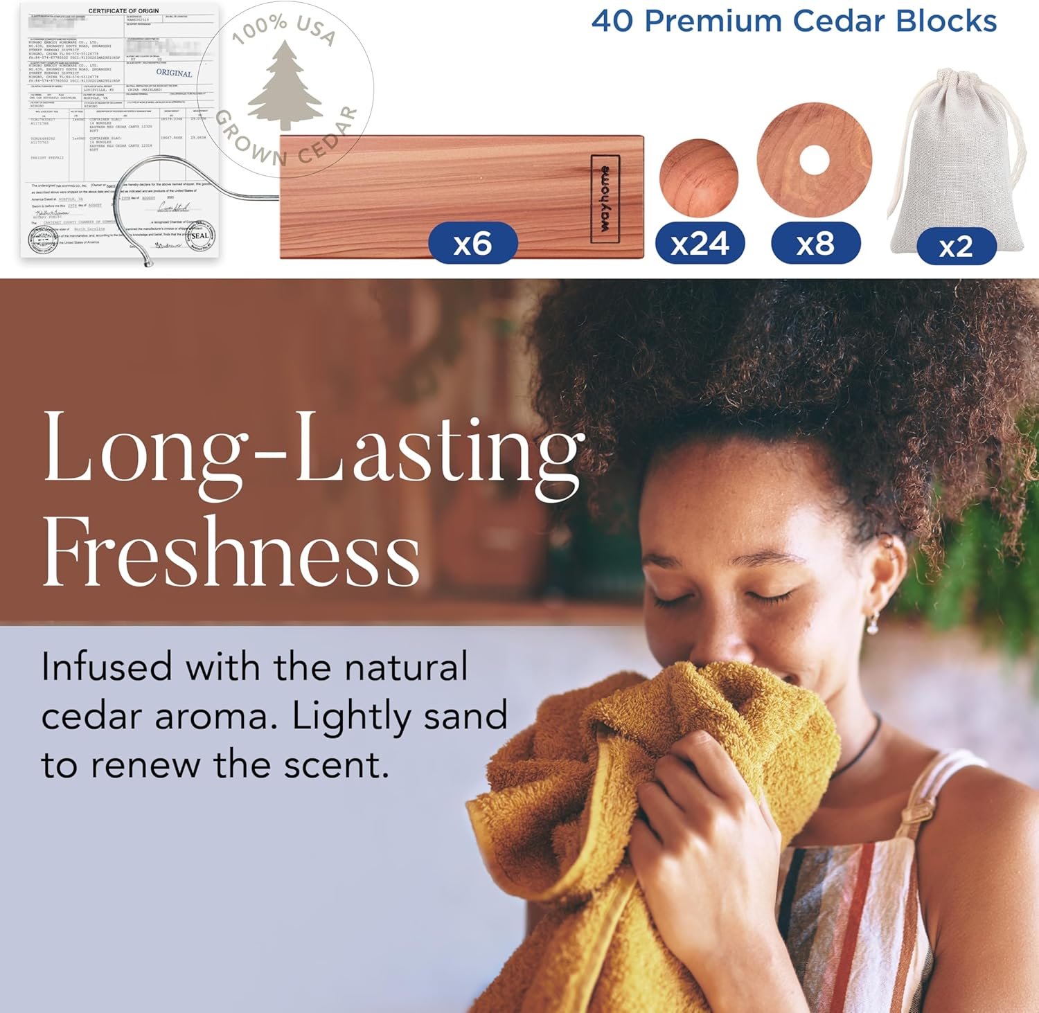 WAYHOME Cedar Blocks for Clothes Storage, Chips, Balls & Rings – 40-Pack Natural Cedar Wood Closet Freshener, Odor Eliminator & Moisture Absorber for Drawers & Storage