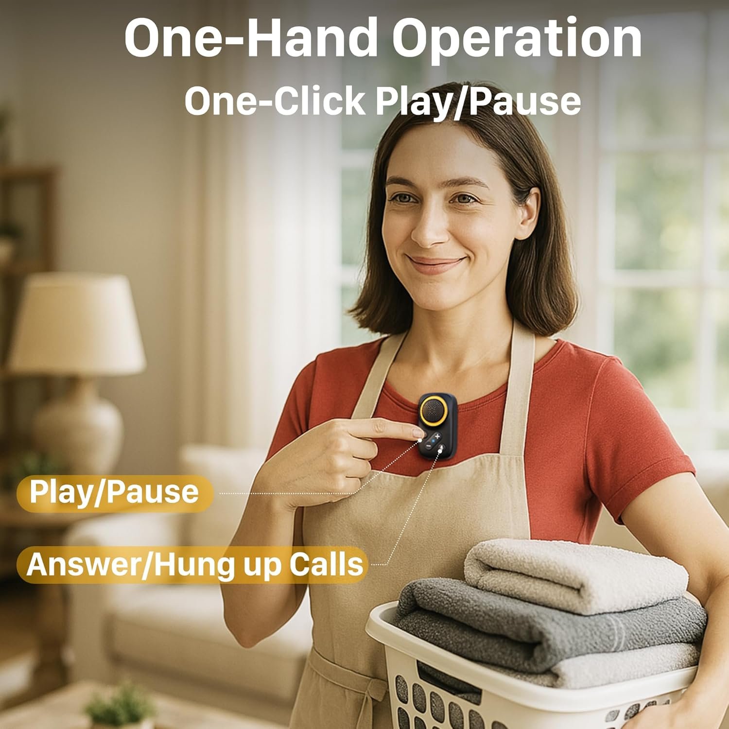 Smart Voice Assistant – One press on the wearable speaker bluetooth activates Siri or Google Assistant for convenient, hands-free commands.