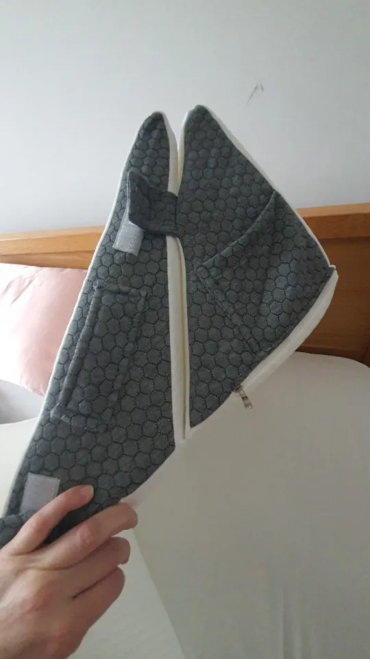 At first it worries a little because it arrives vacuum-packed. Just open it and let it breathe for a day and it takes its shape. It works for those like me who have reflux problems and therefore I recommend it. The materials are honest. We’ll see how long it lasts. Very interesting the fact that it is divided into 3 parts of different shapes but complementary and therefore can take on different configurations. For further improvement, I would recommend enlarging it by a few centimeters……