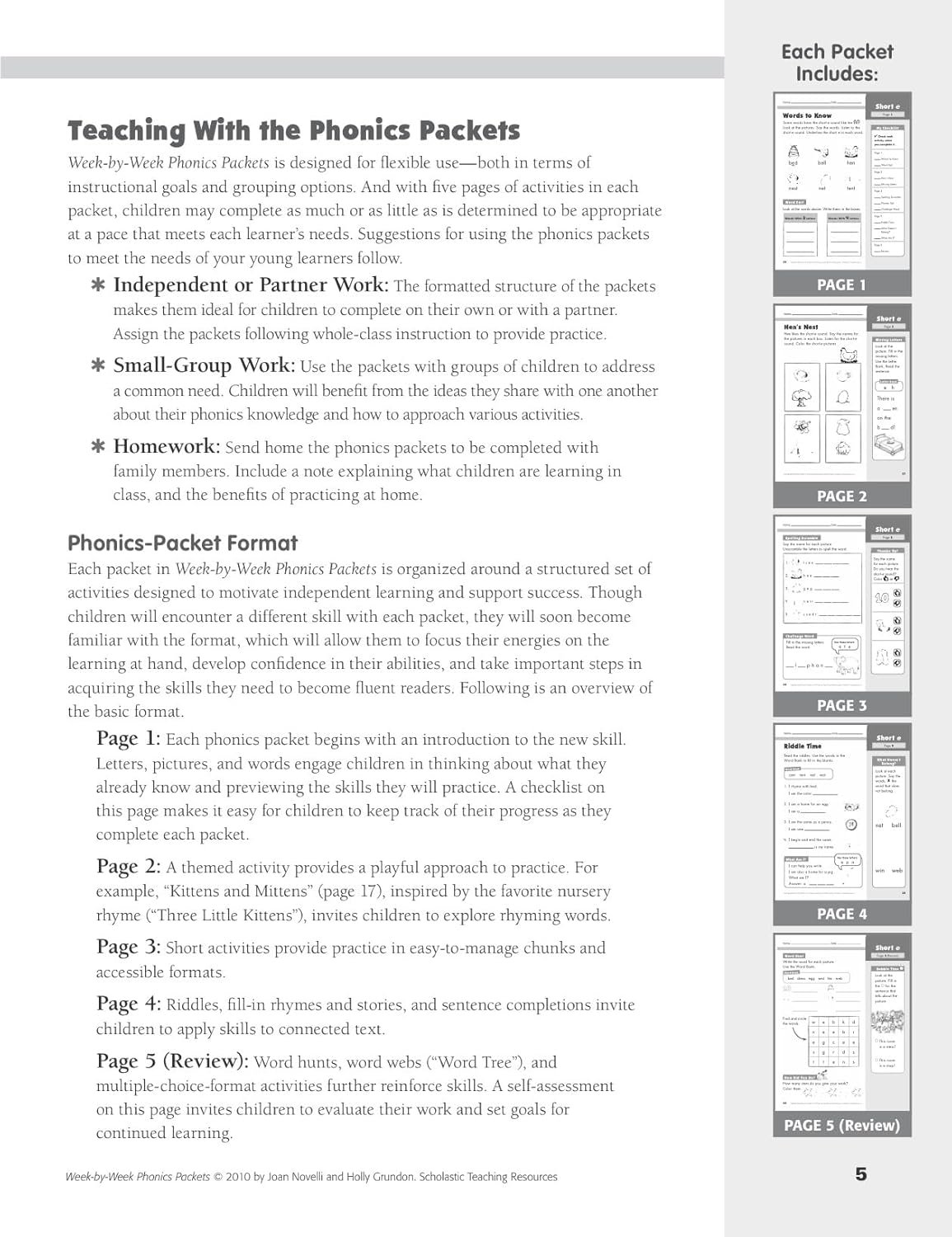 These easy-to-manage, ready-to-reproduce practice packets are a perfect way to target the phonics skills children need to master. Activities include word-shape recognition puzzles, fill-in rhymes, riddles, and stories, word searches, scrambled sentences, word sorts, and much more. Children can work through the packets independently and at their own pace. Perfect for in-class use or homework. An effective tool for supporting second-language learners and RTI instruction.