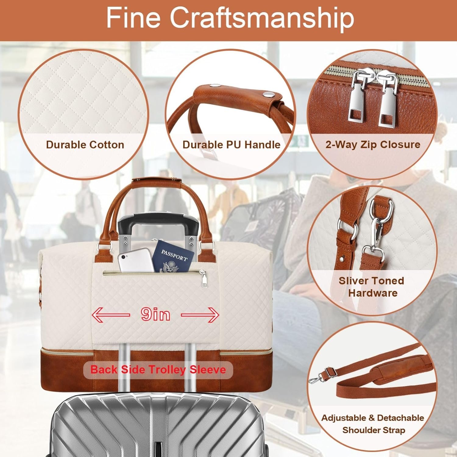 Weekender Bag for Women, Travel Duffel Bag Carry On Overnight Bag with Shoe Compartment Large Nylon Travel Weekend Tote Bag