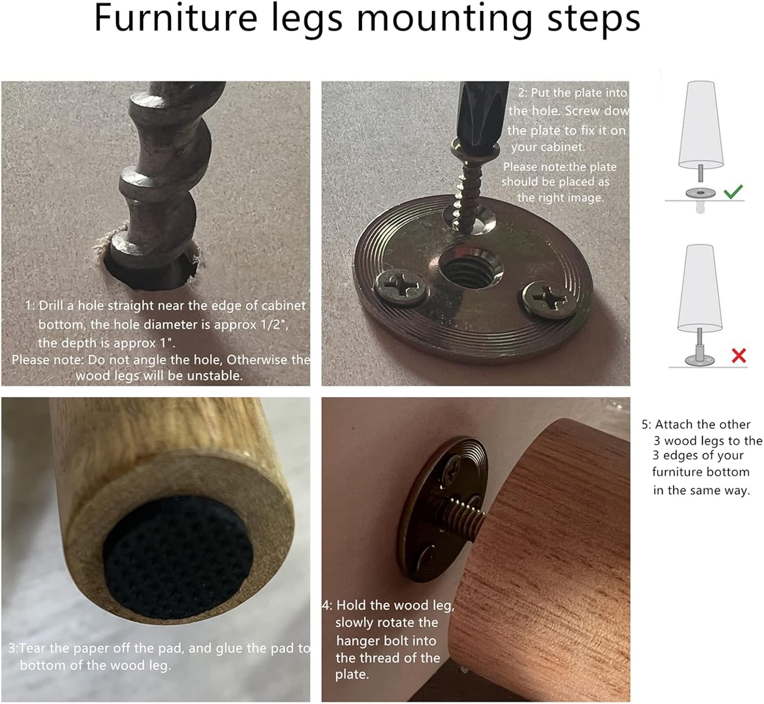 Each package includes 4 wooden legs and mounting hardware packet, providing a complete replacement set. Designed for stability and weight-bearing capacity, they ensure your furniture remains secure and balanced.