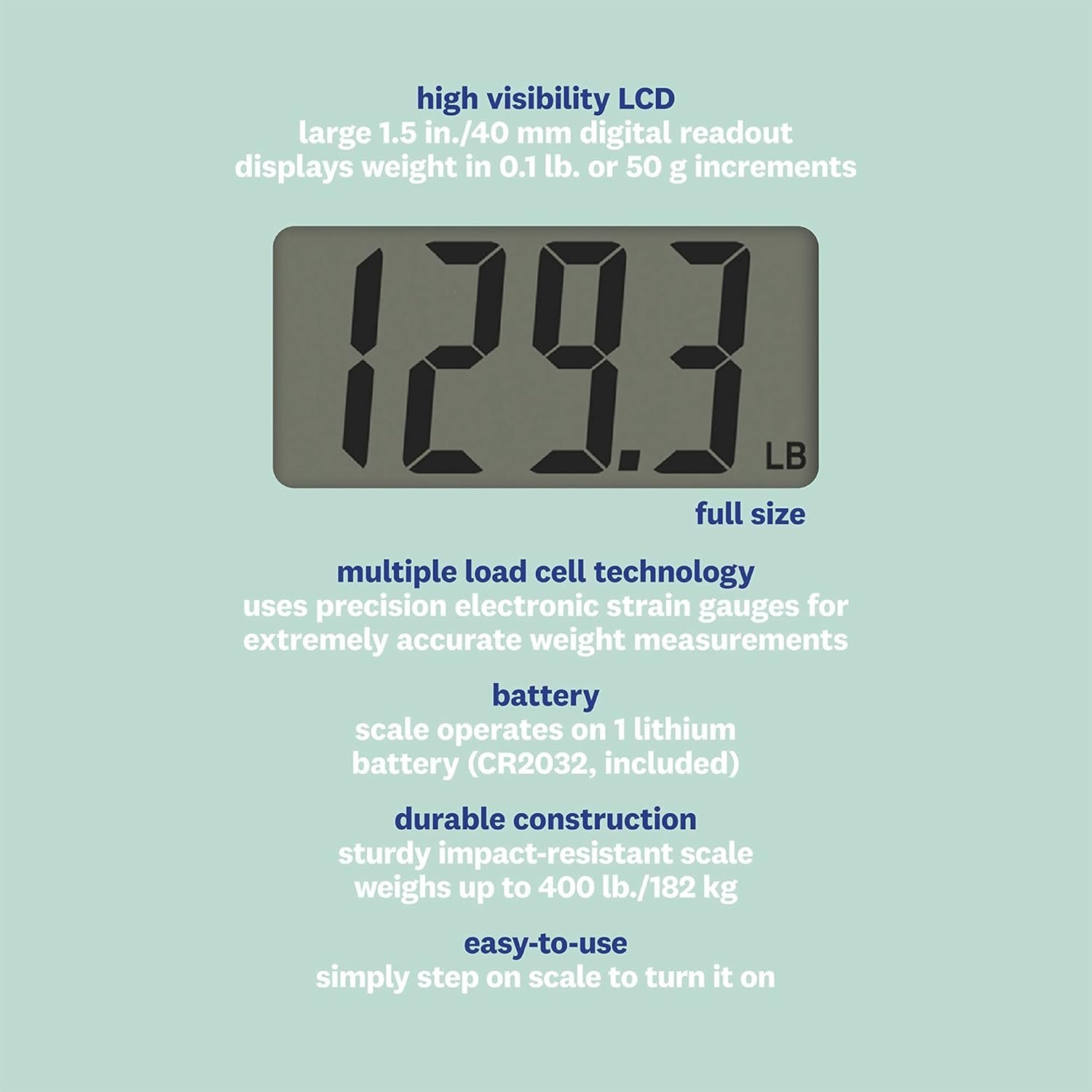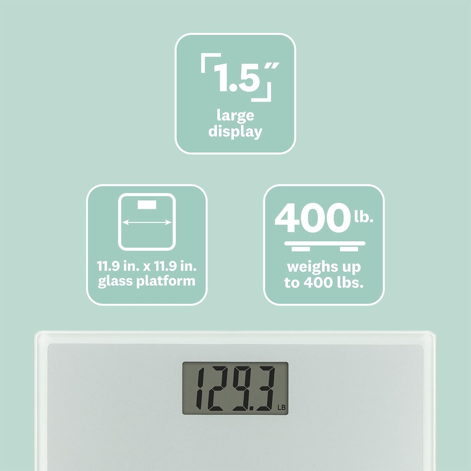 Step Into Success: This digital scale has a 400 pound capacity, features chic glass, easy to read 1.5″ large display, and uses precision electronic strain gauges for extremely accurate weight measurements