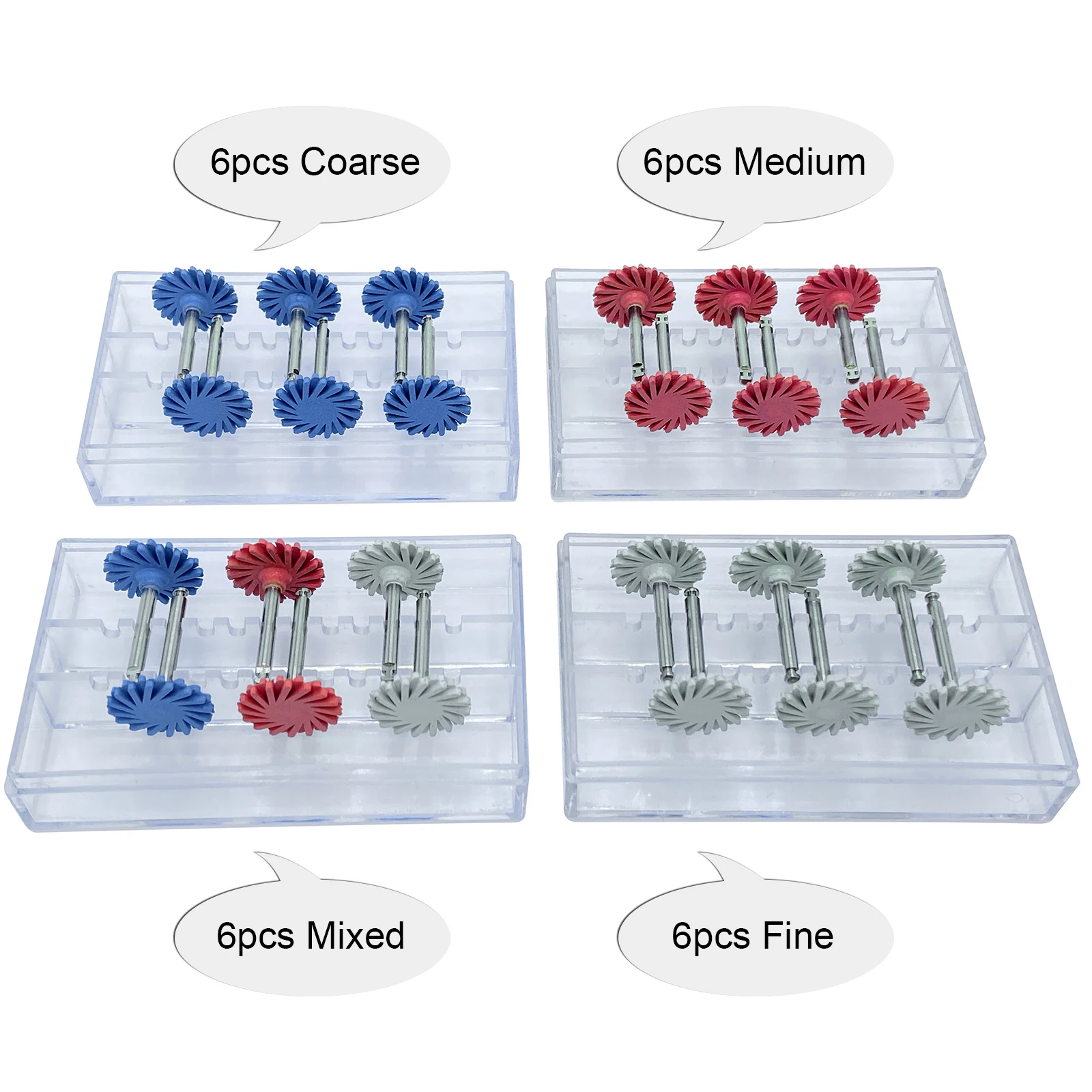 WellCK 6pcs/Set Dental Rubber Polisher Composite Resin Polishing Diamond System RA Disc Kit 14mm Wheel Spiral Flex Brush Burs