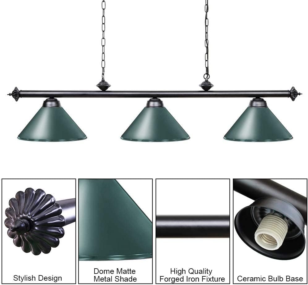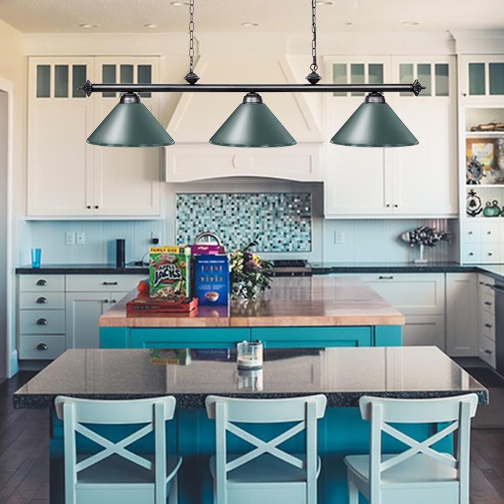 Wellmet Pool Table Light, 59” Hanging Billiard Lights, Adjustable Kitchen Island Lighting Fixture for Billiard Bar Table, Dining Table, Green