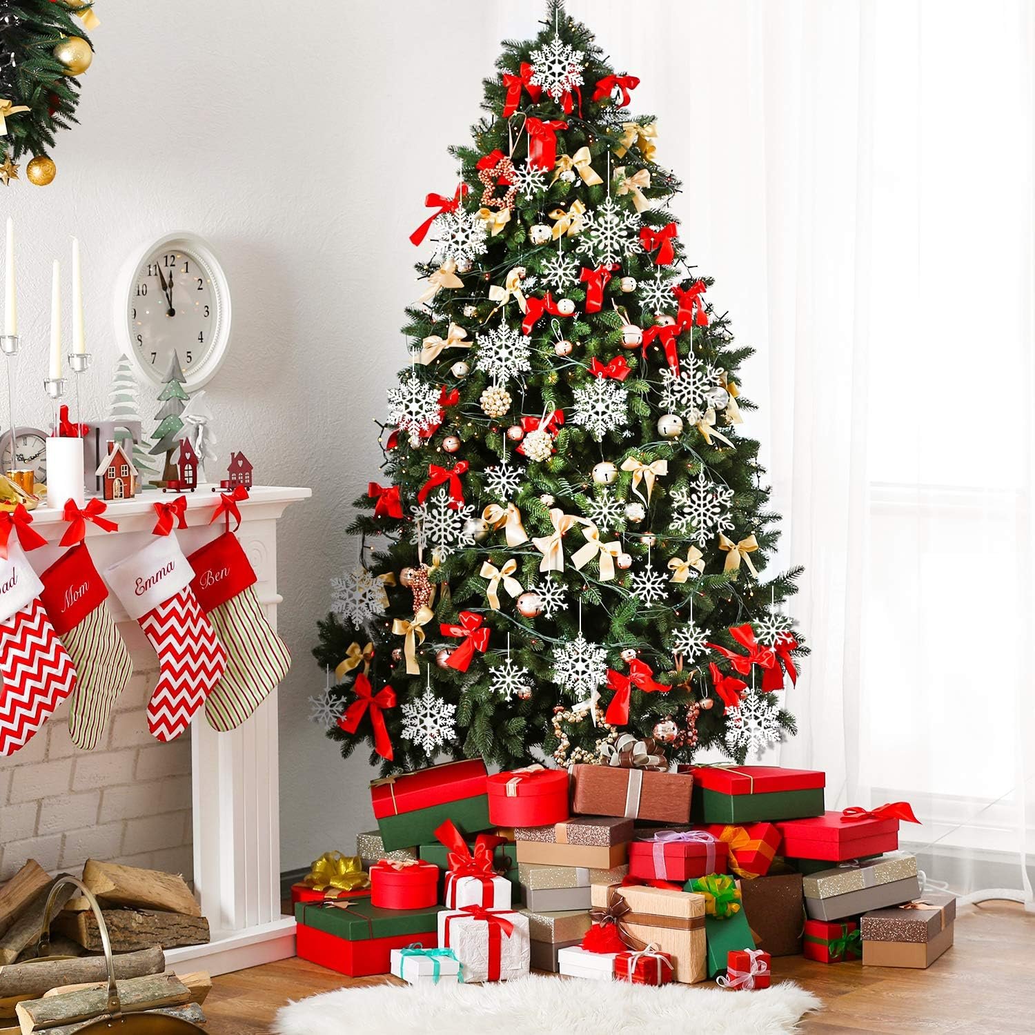 PRE-ASSEMBLED – Each snowflake comes with strings attached, so they are ready to be hung on your Christmas tree, garland or window right out of the package. And it also comes with a 5-meter (197 inches) silver rope, so you can hang them on anywhere you like