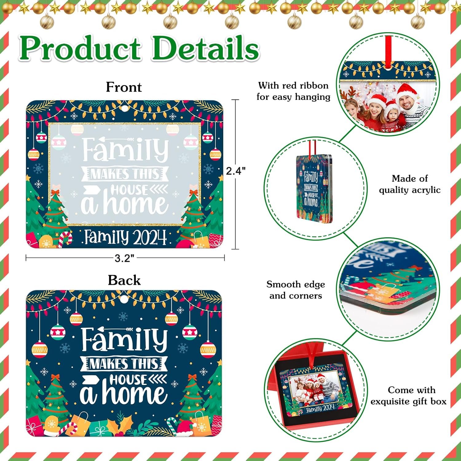 【Meaningful Christmas Ornament Gifts for Family】: The photo frames family ornaments are meaningful Christmas gifts for your family, friends or neighbors on Christmas, Thanksgiving, New Year Winter Holidays, memory of this happy 2024 Christmas and meaningful moment.