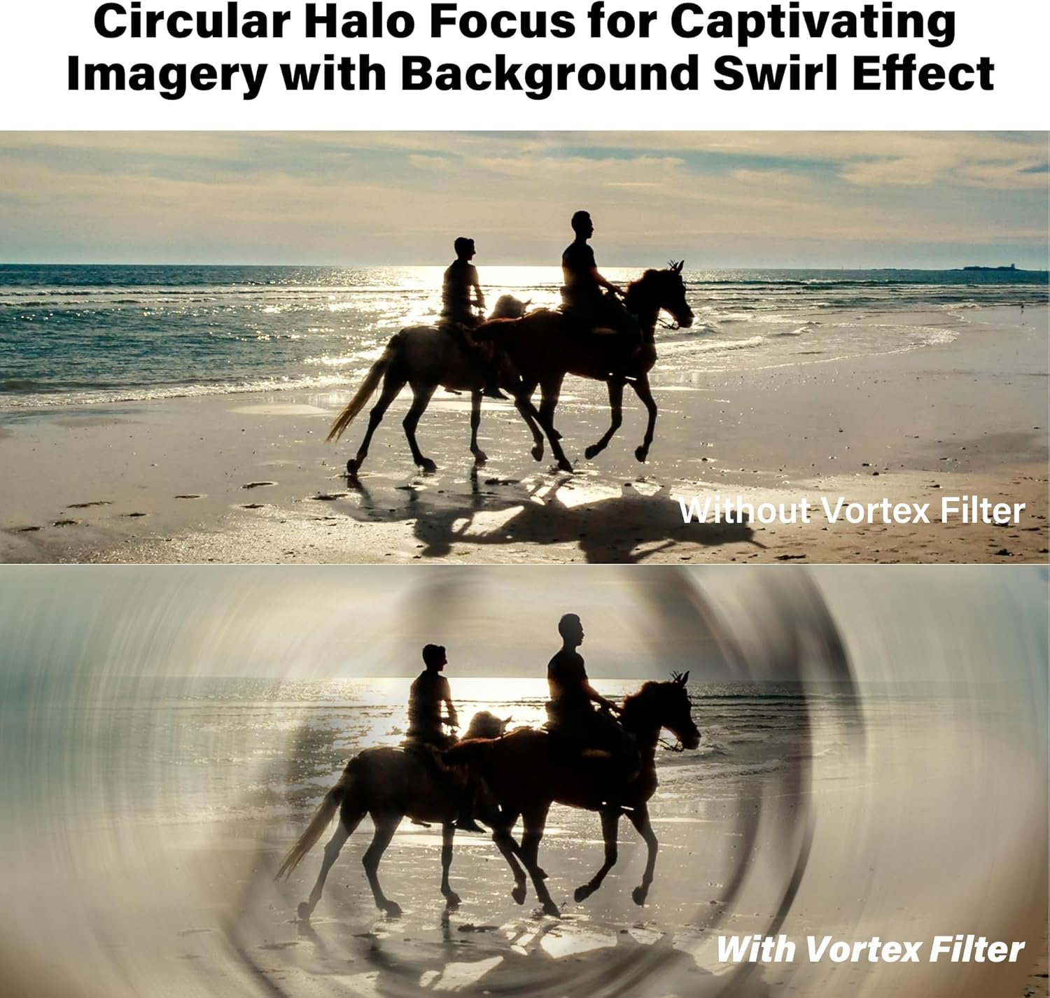 【The New Vision】Our whirlpool camera filter is designed for photography enthusiasts and professional photographers to focus images with a captivating circular halo effect that highlights the central subject while transforming the background into a vortex-like magnifying blur effect. It’s the perfect match for shooting movies, music videos, branded content, travel photography, commercials, and more. We recommend shooting at apertures ranging from 2.8 to 7.0.