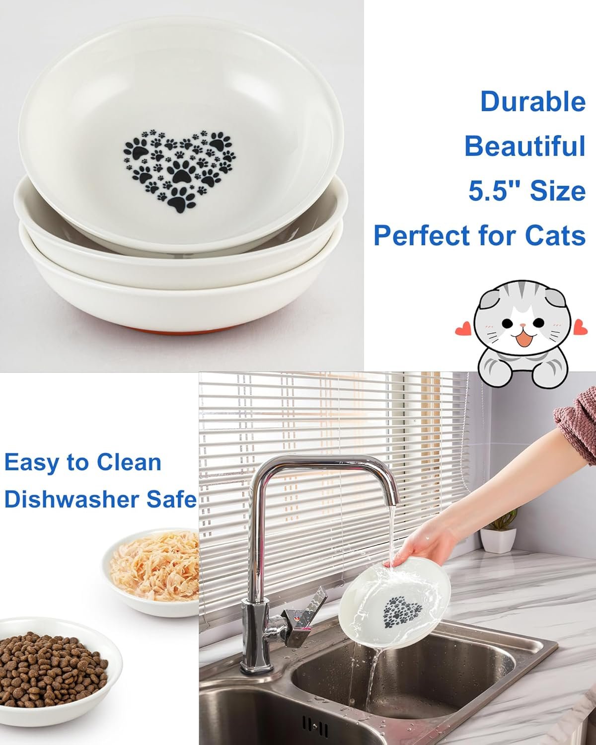 EASY TO CLEAN AND VERSATILE: With a smooth ceramic surface, our cat plates are dishwasher, microwave, and oven safe for easy cleaning. Use them for wet and dry food, water, milk, or as a versatile snack dish for your pet