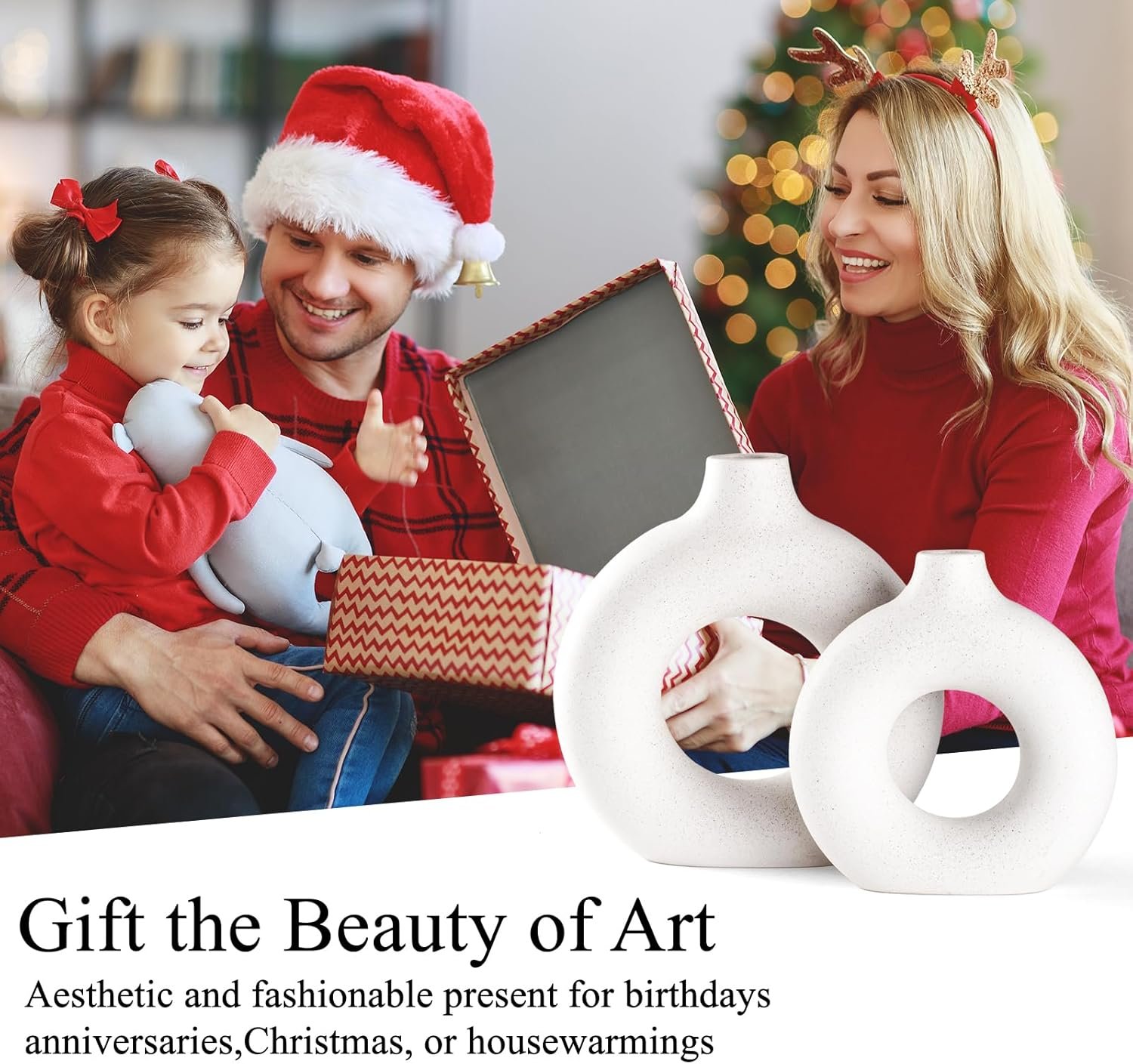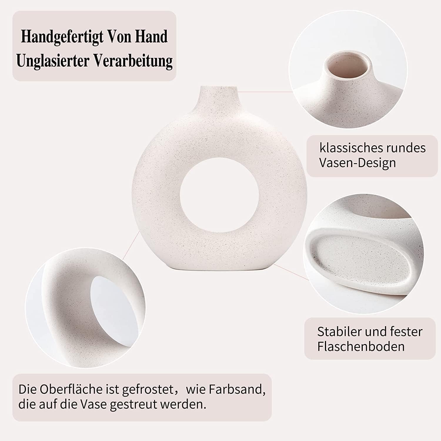 Donut Design: The decorative vase is designed with a unique donut shape that differs from the traditional vase. The hollowed out center makes it not only a flower vase, but also a work of art.