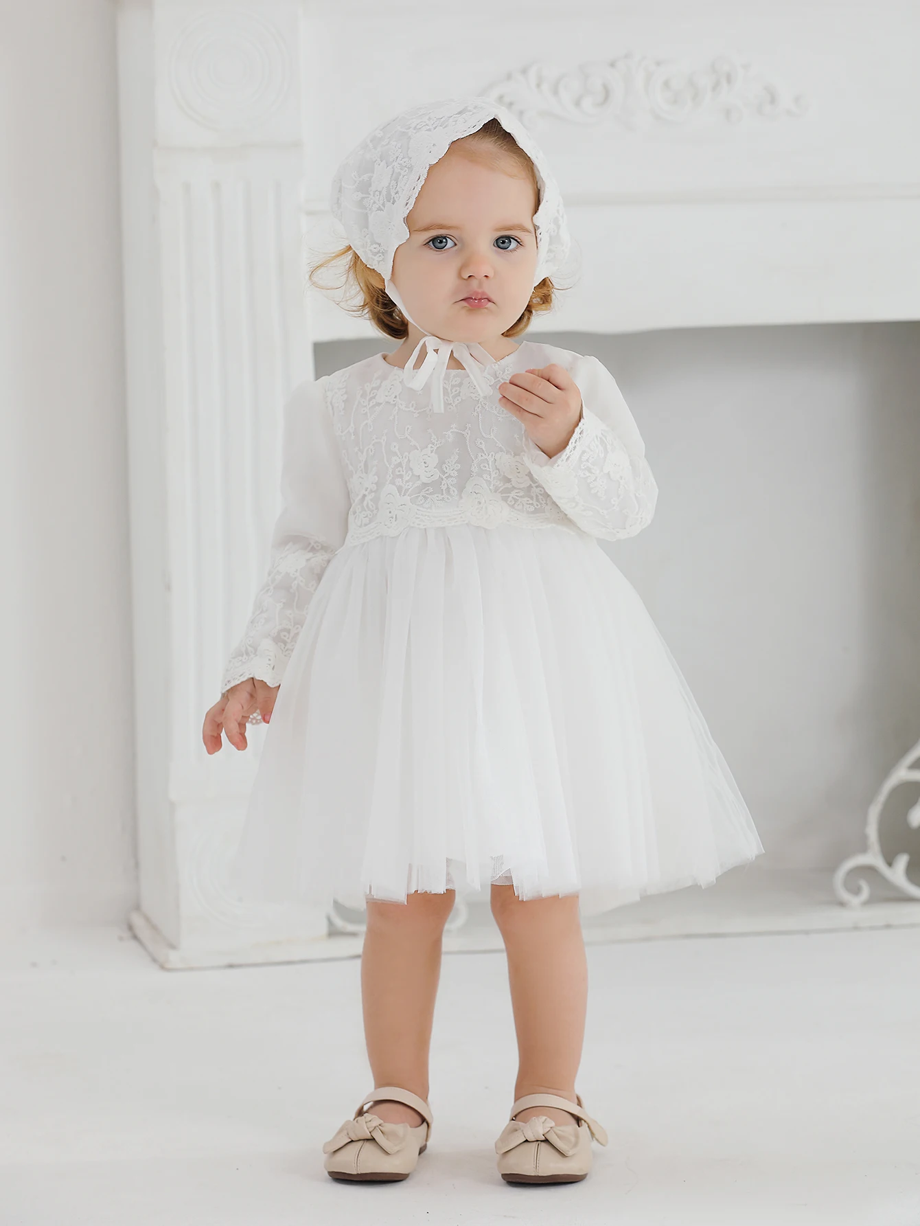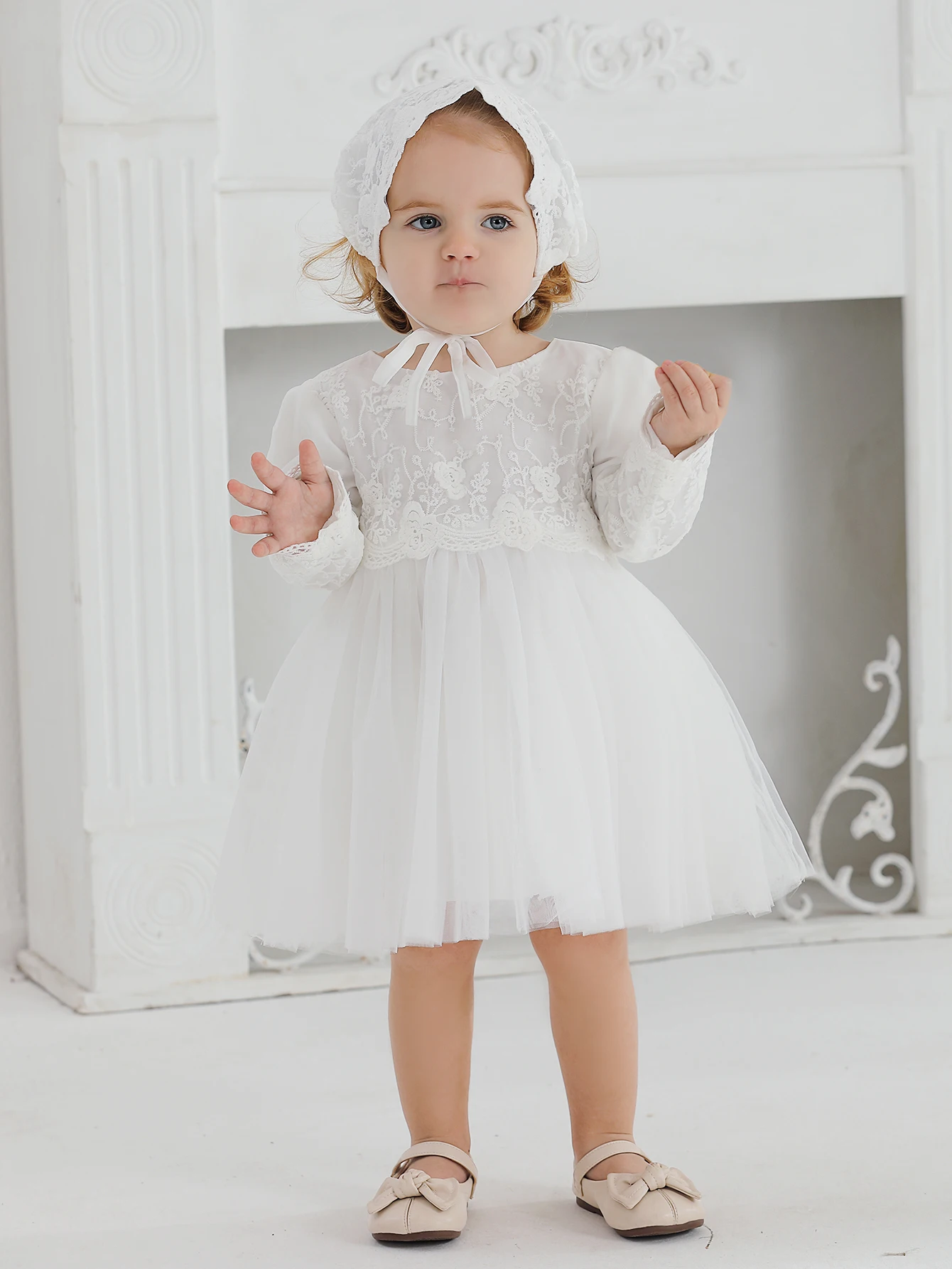 4 reviews for White Christening Dress for Newborn Babies With Long Sleeved 3 Months Baby Dress Little Girls Lace Baptism Ball Dress+Hat