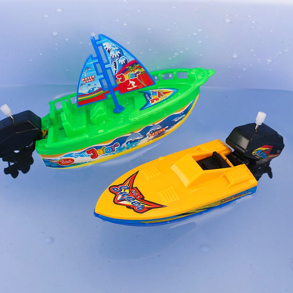 Wind Up Clockwork Float In Water Speed Boat Ship Children Bath Toys Random Color Kids Pool Swimming Bathtub Bath Toys