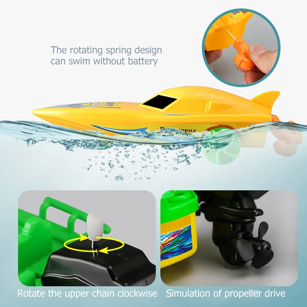 Speedboat Boat Clockwork Toy Floating Water Classic Clockwork Water Boat Children Bathtub Shower Boy Toy Gift Random Color