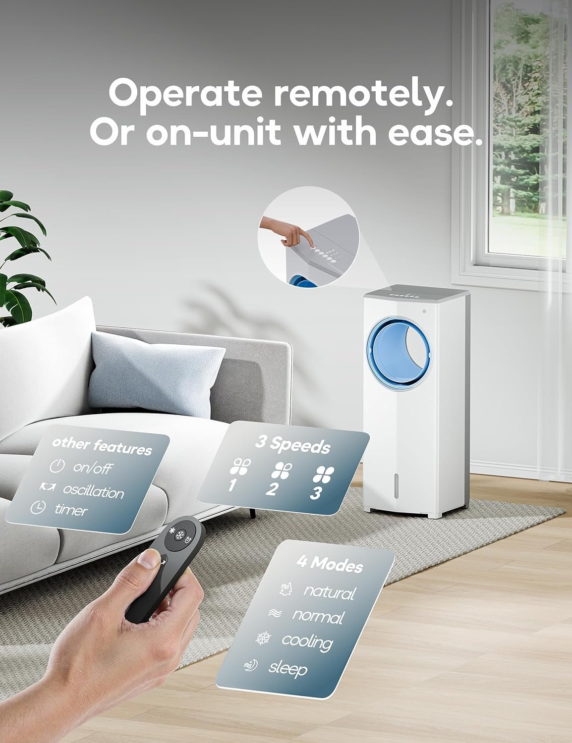 ⚡ 7H Timer & Remote Control: Schedule cooling and adjust settings from across the room.