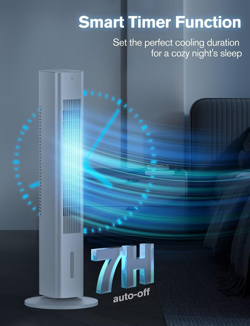 ❄[𝟳𝗛 𝘀𝗺𝗮𝗿𝘁 𝘁𝗶𝗺𝗲𝗿 𝗮𝗻𝗱 𝗹𝗼𝘄 𝗻𝗼𝗶𝘀𝗲] With 40dB low noise, sleep mode allows you to rest quietly all night without any interference. The 1-7H timer can be adjusted according to your sleep schedule, eliminating the need to get up in the middle of the night to turn off the swamp cooler air conditioner.