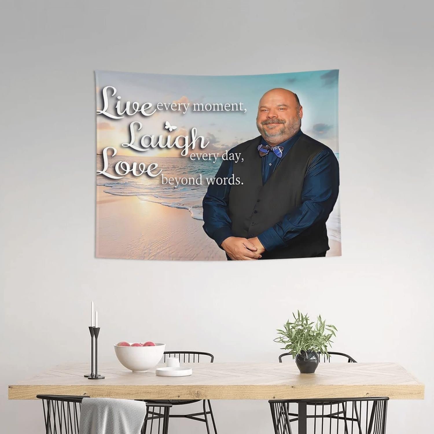 Customers find the tapestry’s color perfect for room decor and appreciate its good size. Moreover, they like its humor, with one customer noting its silly vibes. However, the image quality receives mixed feedback, with one customer describing it as grainy and blurry.
