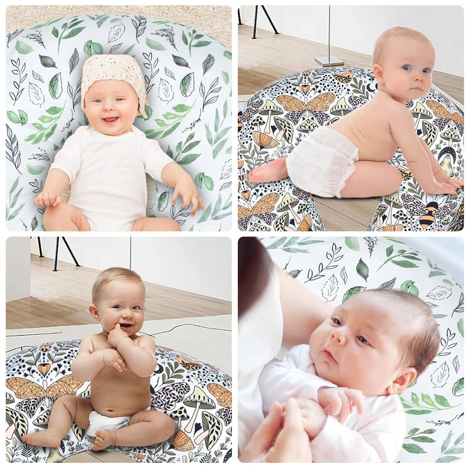Winmany 2 Pack Baby Nursing Pillow Cover Newborn U-Shaped Breastfeeding Pillowcase Cushion Cover Stretchy Replaceable Forest&Floral Pillow Cover Slipcover 22.5×21