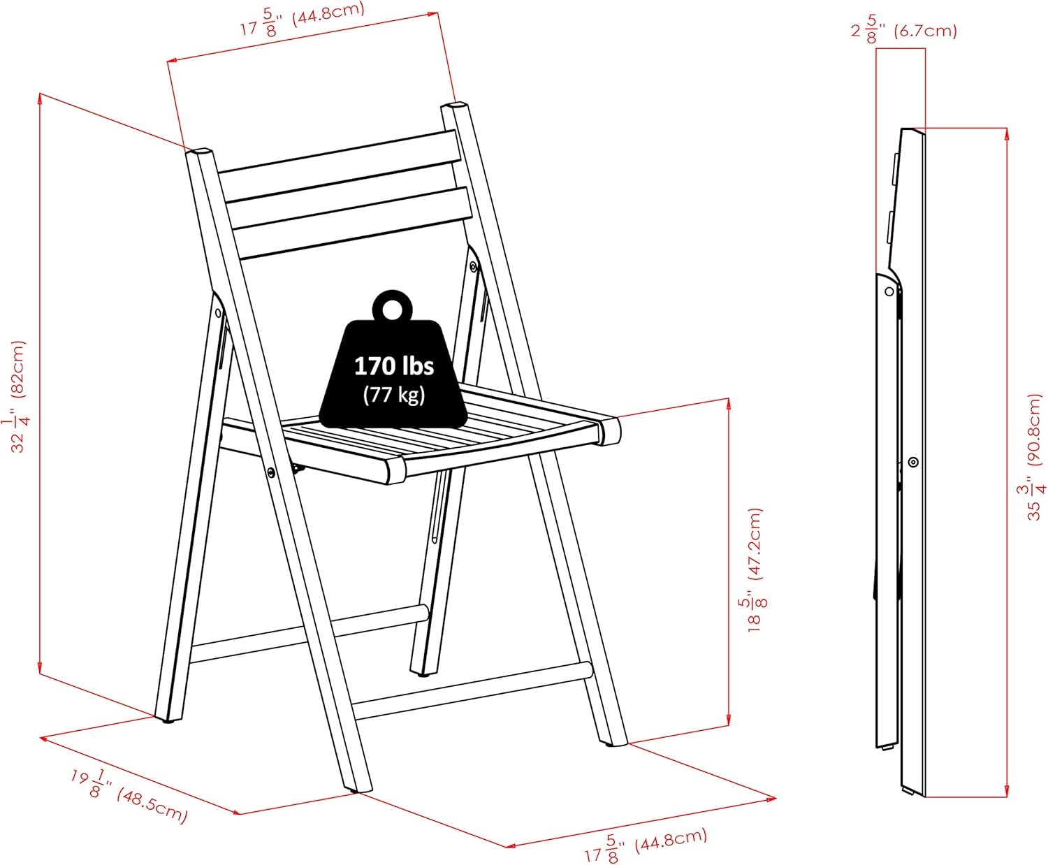The Robin 4-PC Folding Chair Set in Teak finish have never looked so handsome. This 4-piece set of solid wood chairs is an indispensible addition to any home. Pull up the chairs for a card game or for extra seating around the dining table. Or bring them out when company comes over. The smooth seats are slatted and the double-bar backs give added support. The folded chairs tuck nicely against one another for compact storage. Finished in a rich Walnut. Overall size open is 32.25″H x 17.6″W x 20.1″D. No assembly required. Seat Height from floor : 17.4”, Seat Back Height : 14.90”, Seat Back Width : 17.60”,Seat Width : 15.19”