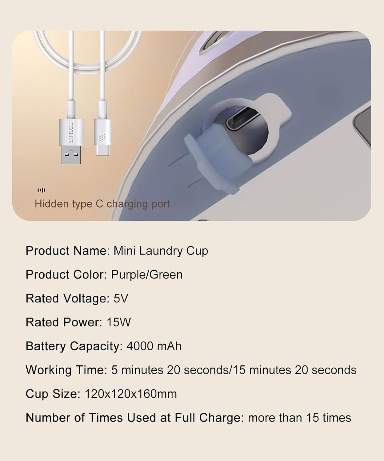 Wireless Mini Washing Machine for Dormitory, Portable Small Washer, No Need to Plug in, No Need to Drain, 1L Capacity Compact Mini Washing Cup,Purple