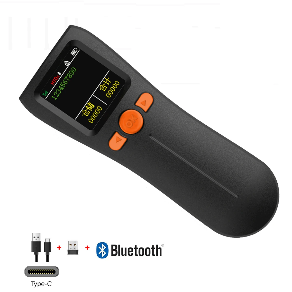 Can scan fine with usb / bluetooth / 2.4ghz dongle. Press up/down arrows at the same time for menu options. Auto powers off. Battery came full charge. All codes i pointed it at seemed to work. Using it with grocy in home assistant. Thank you!