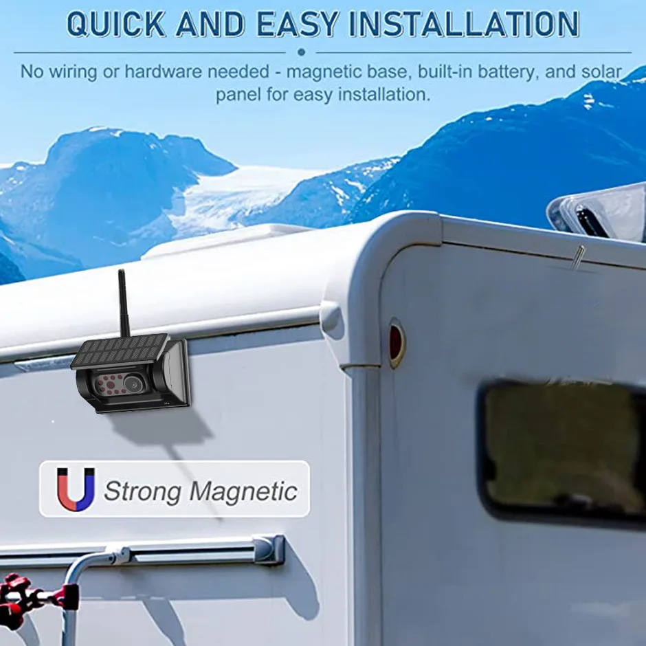 Wireless Solar Powered Energy Magnet Reverse Backup Camera with AHD 7″ Rear View DVR Recording Monitor for Camper/Truck/Trailer