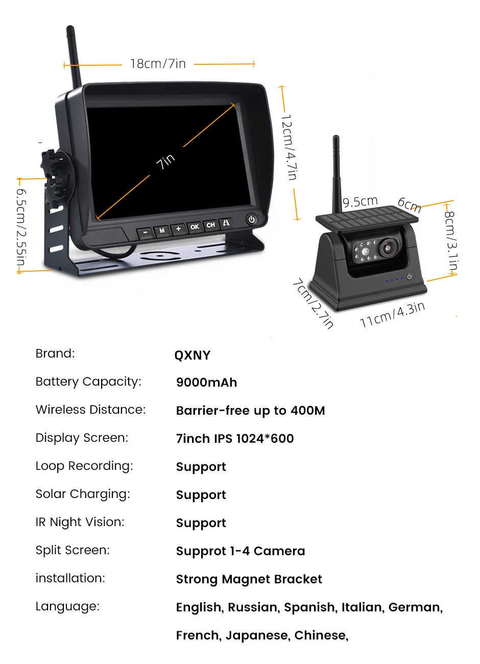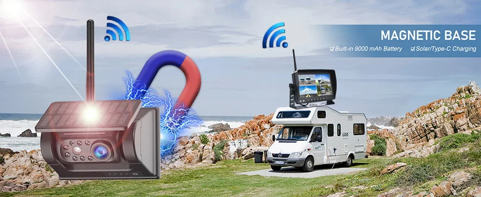 6 reviews for Wireless Solar Powered Energy Magnet Reverse Backup Camera with AHD 7″ Rear View DVR Recording Monitor for Camper/Truck/Trailer