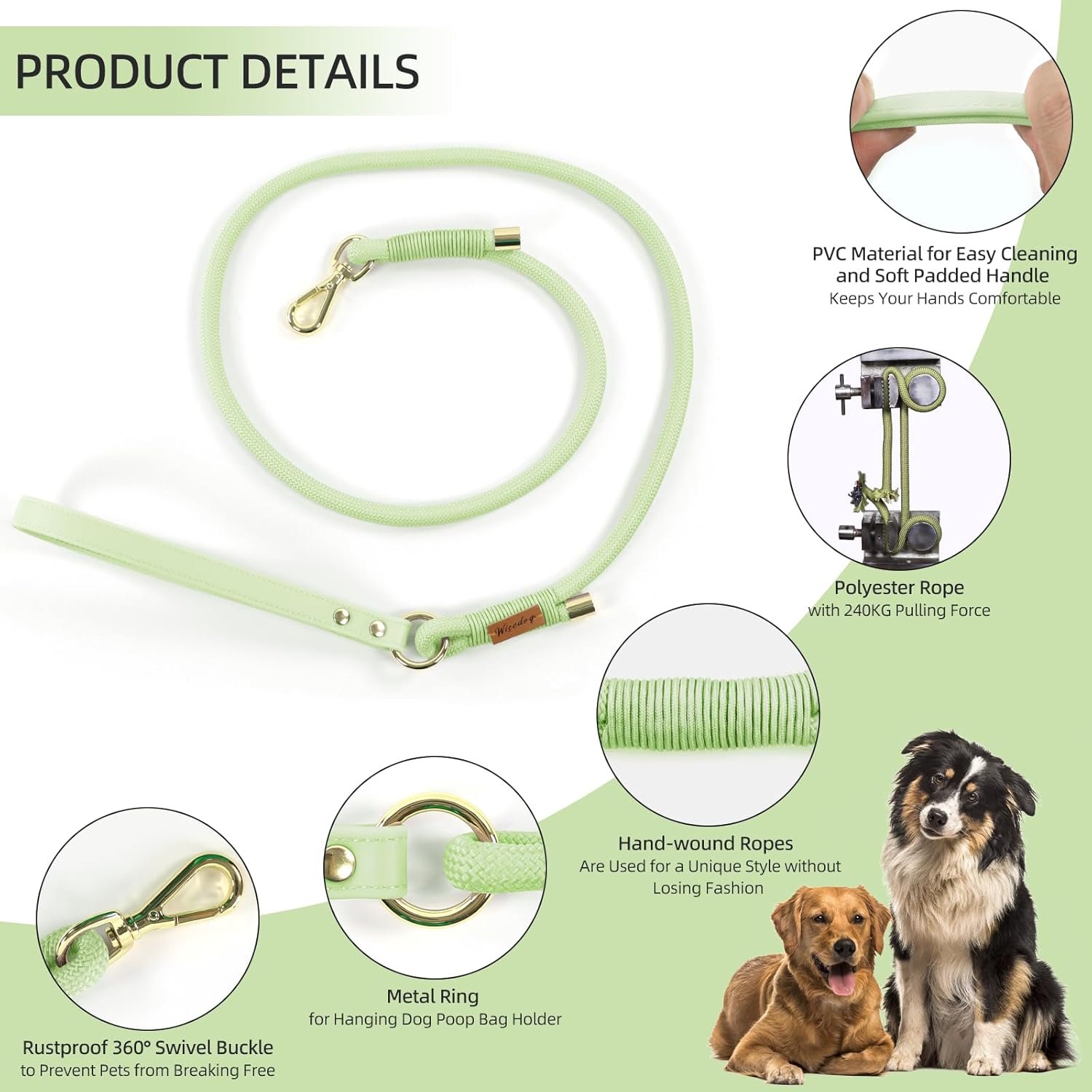 【Durable and Heavy Duty】Made from high-quality polyester rope, this rope dog leash can withstand the pulling and tugging of even the most energetic dogs.