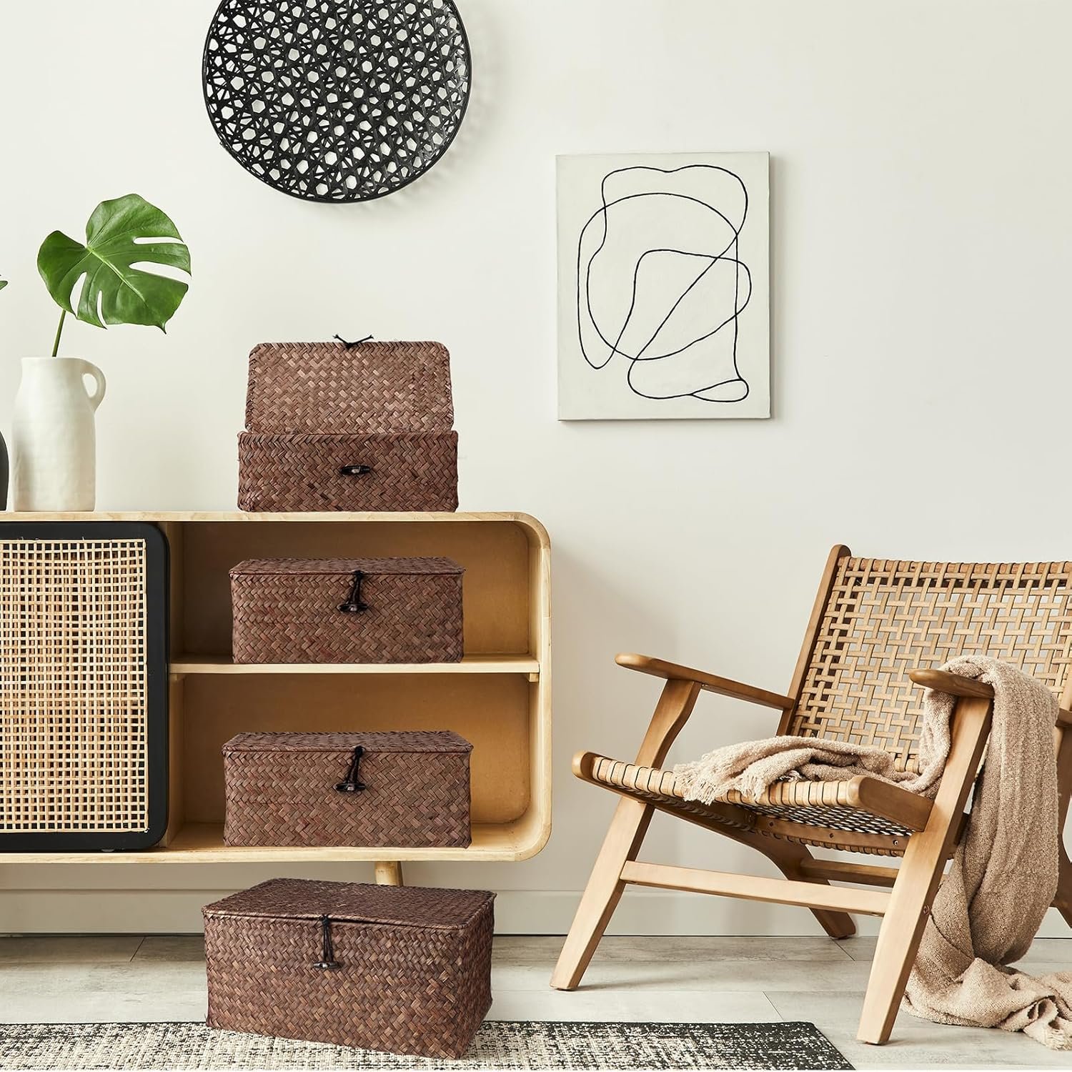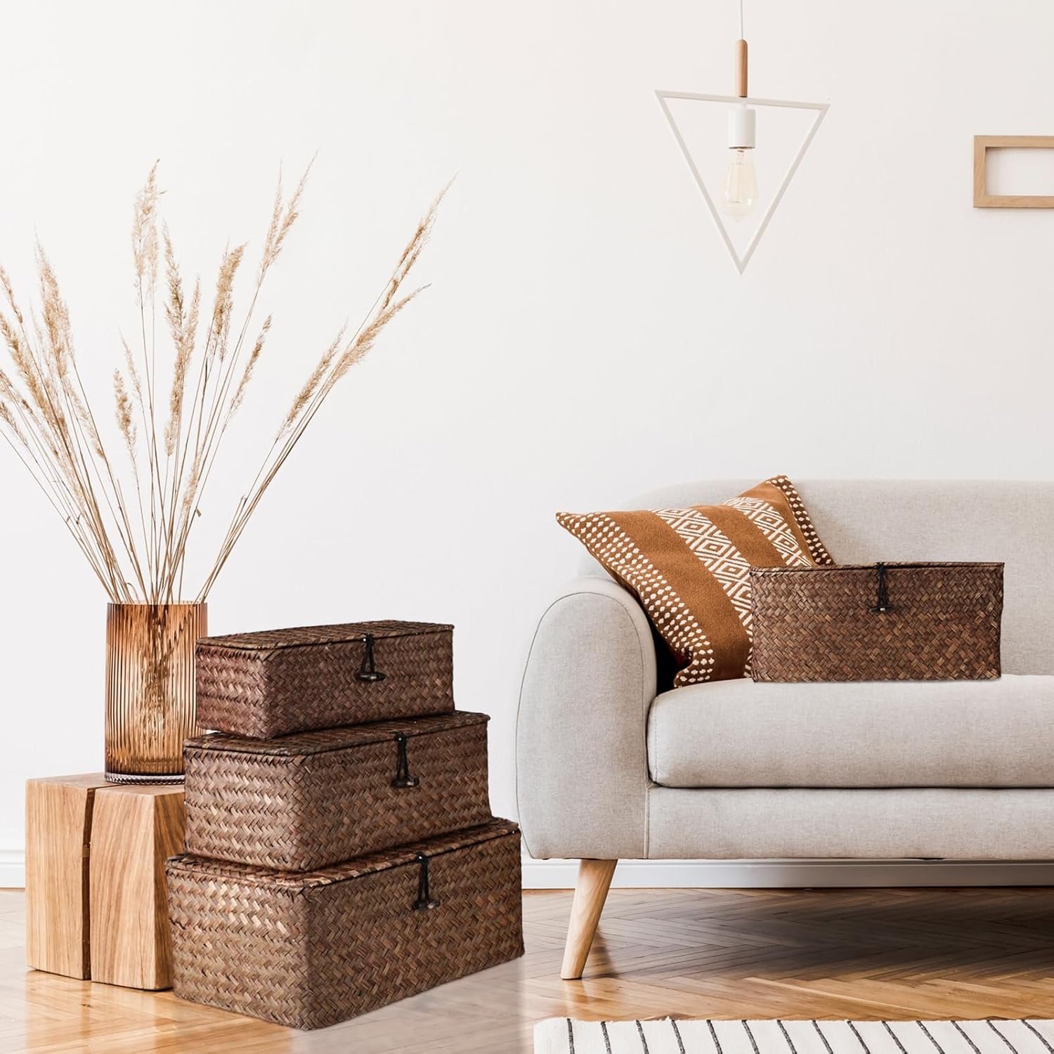 Natural Seagrass Material: our rattan box with lid is made of quality natural seagrass with wire inside, sturdy, durable and long lasting, woven by hand, not easy to break or deform, you can use with confidence; Note: natural material, the color and pattern of each product may be different, please refer to the actual product; Wipe gently with damp cloth and store in a dry area for long term service