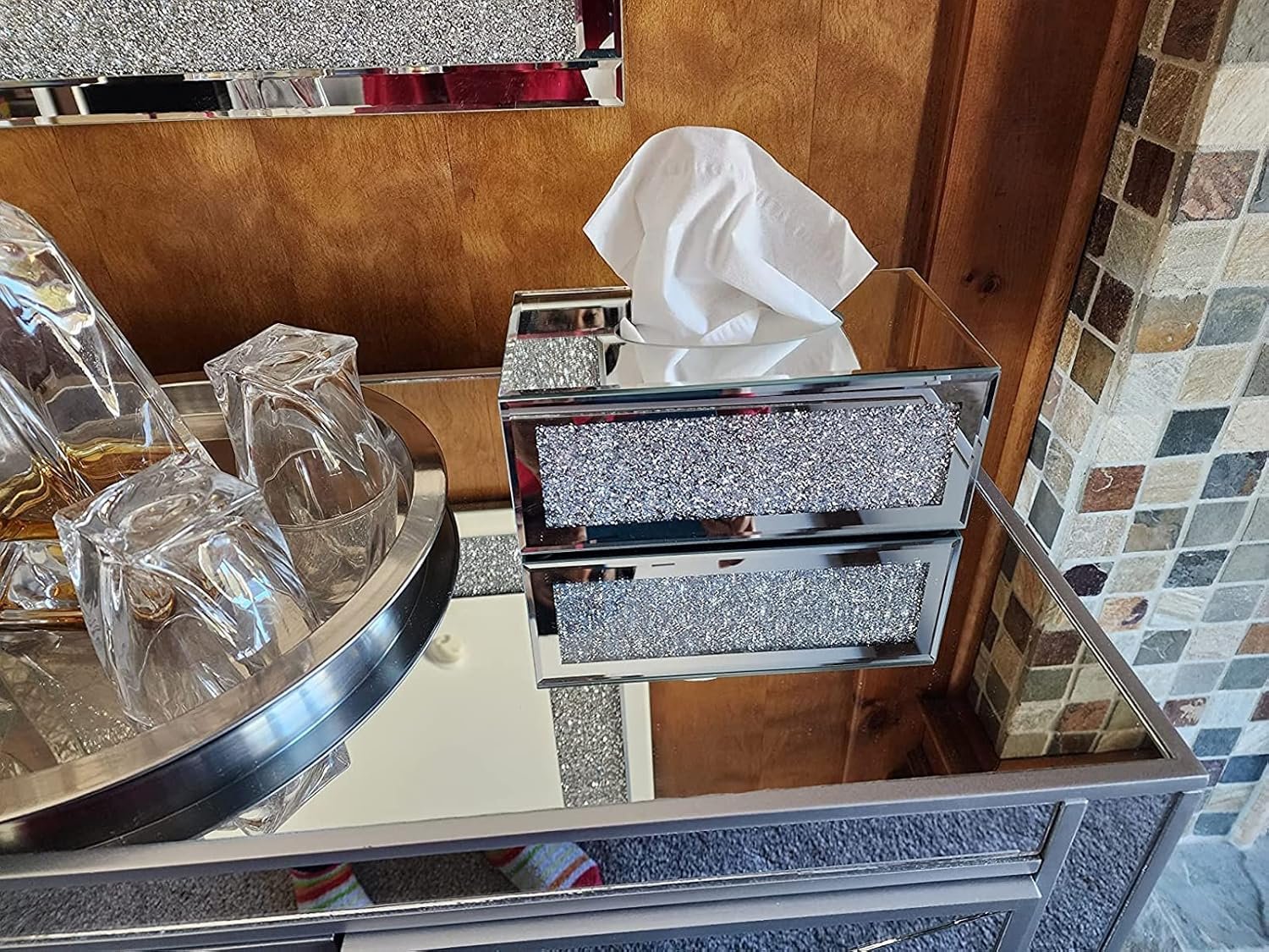 Big Rectangular Mirrored Tissue Box Cover,