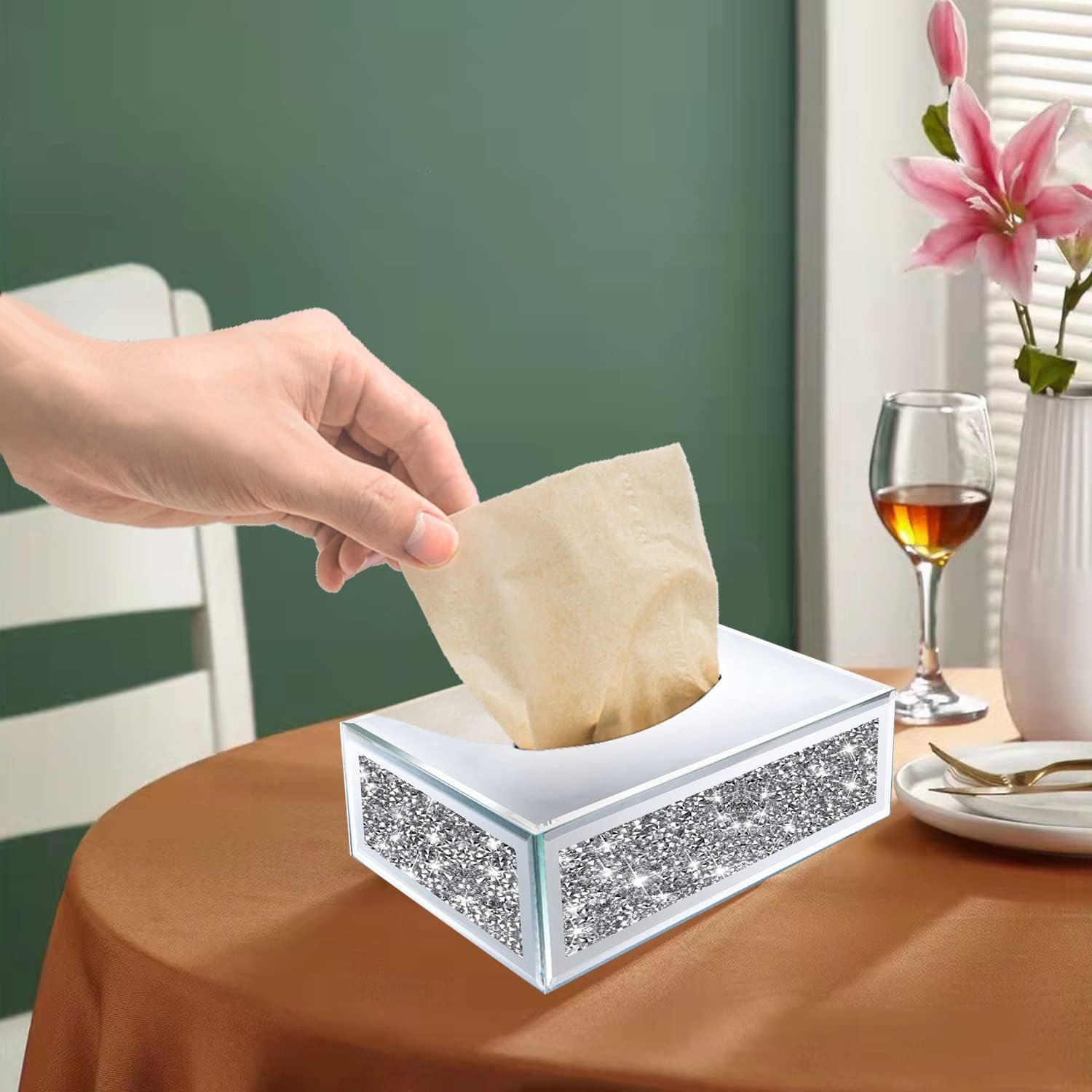 GIFT:The mirrored napkin holder goes well with any mirror-mounted home decoration.It is a perfect complement to the dressing table,Bathrooms, Countertop, Facial Bedroom Dresser, Nightstand, Desk, Table, Vanity.