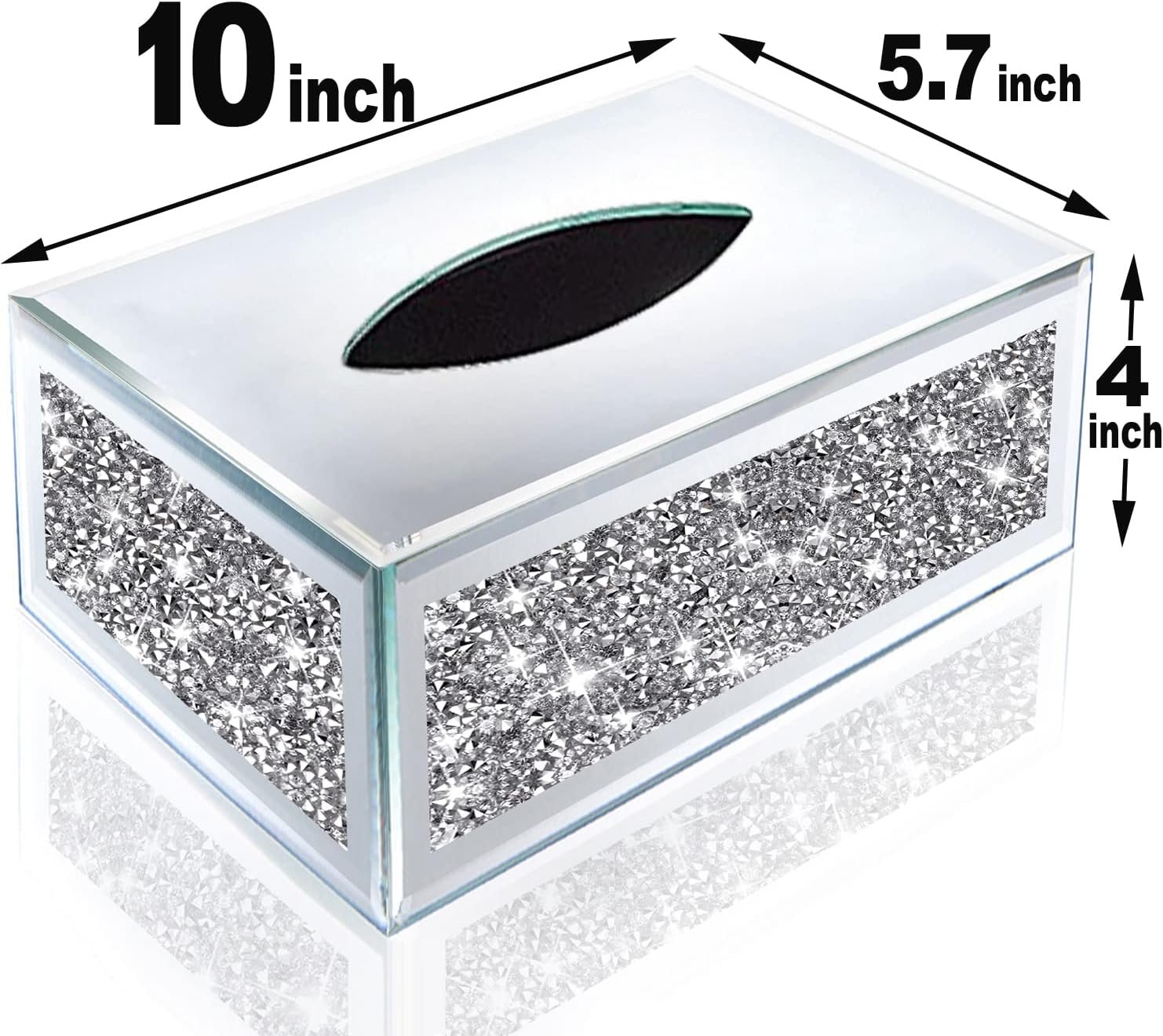Wocred Rectangular Mirrored Tissue Box Cover,Crystal Crushed Diamond Tissue Box,Silver Luxury Tissue Holders for Either Tissues in a Bathroom or Napkins on a Table.(10”x5.7”x4”)