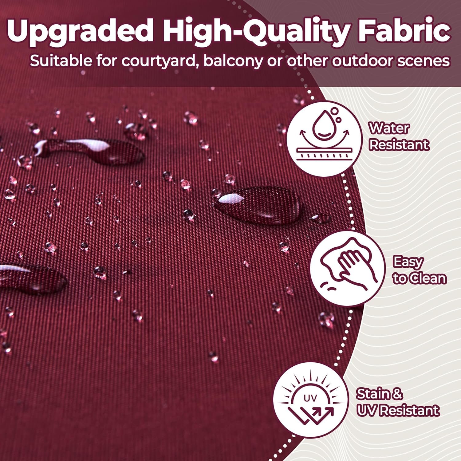 WATER RESISTANCE – The patio cushions are made of 300GSM high-density polyester fabric with TPU coating on the top, providing water resistance and resistance to fading in the sun.The seams are carefully designed to ensure tight stitching. We recommend bringing it indoors when it rains or when not in use to prolong its life and keep it looking beautiful.