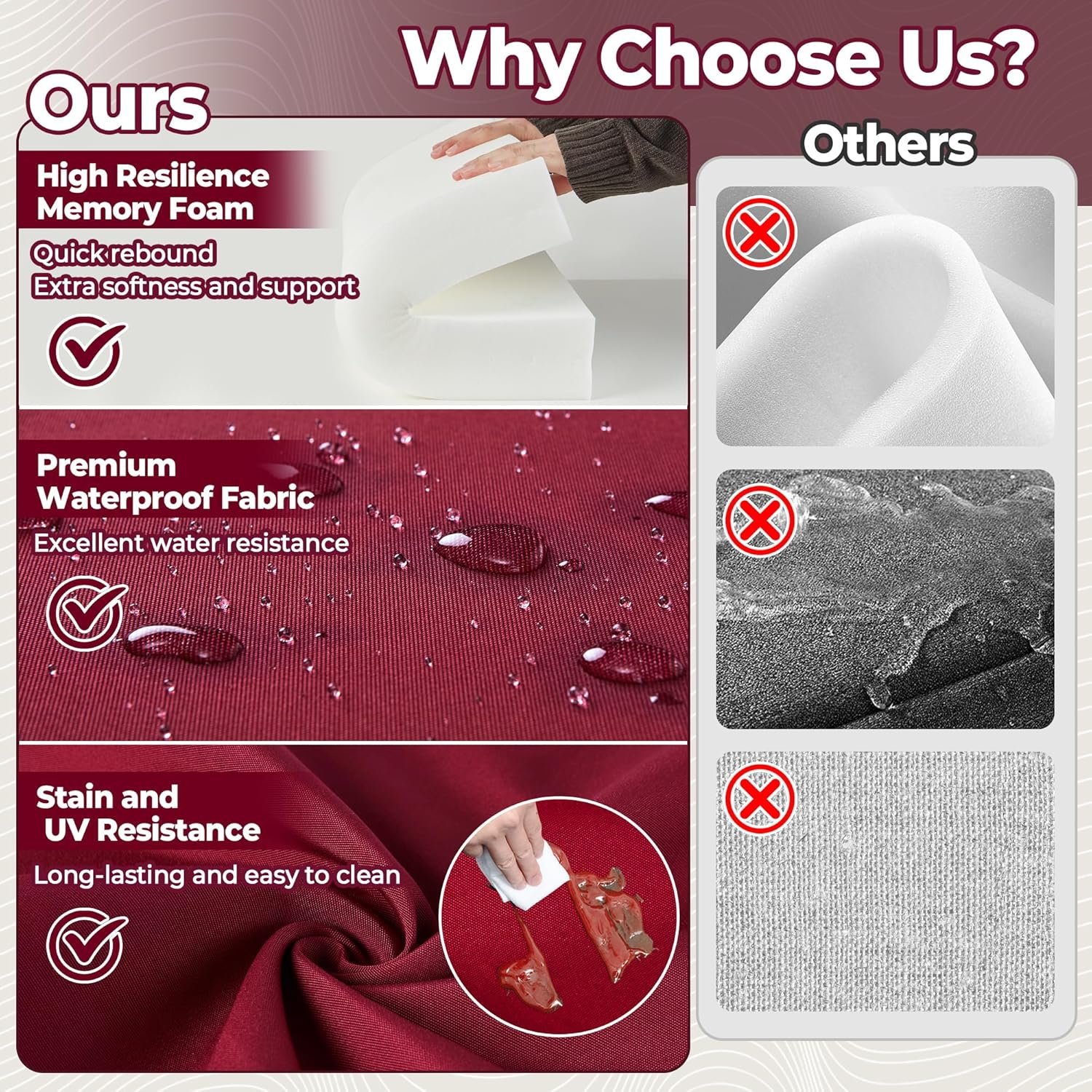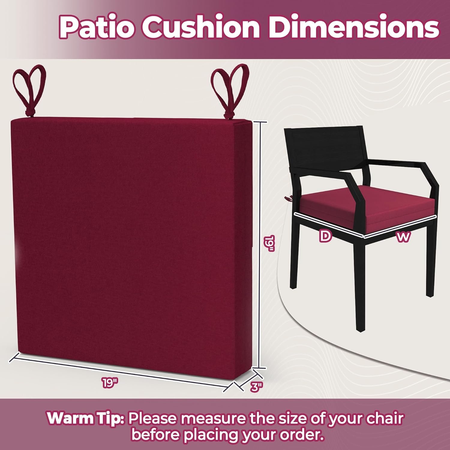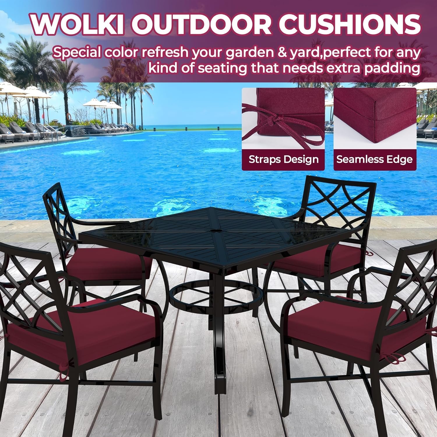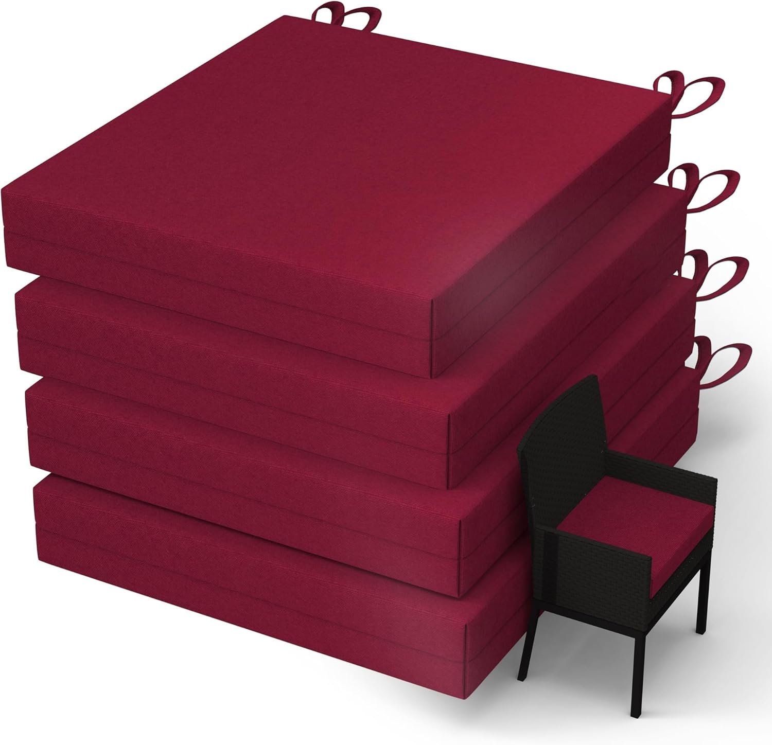 WOLKI Outdoor Cushions for Patio Furniture Set of 4, 19 x 19 x 3 Large Size Waterproof Seat Cushions Thick Chair Pads for Garden, Patio, Dining Wine Red